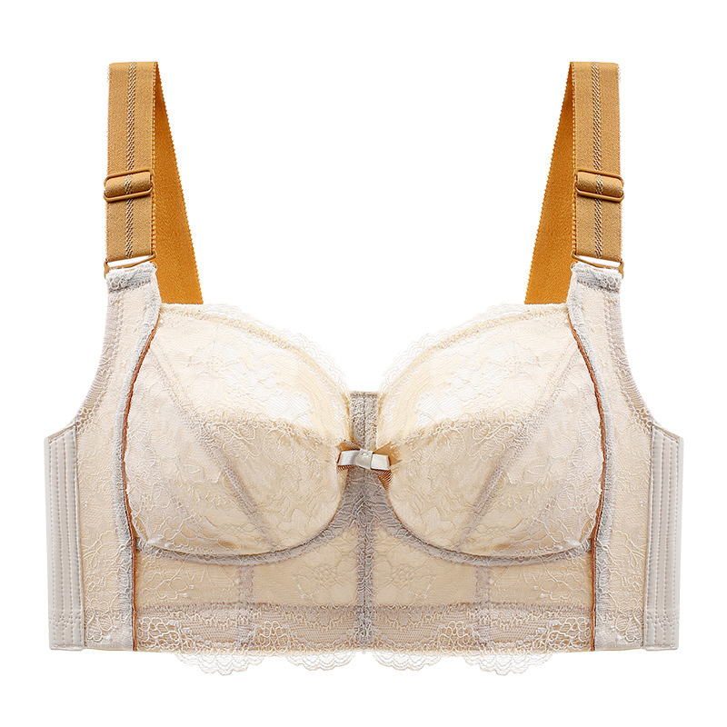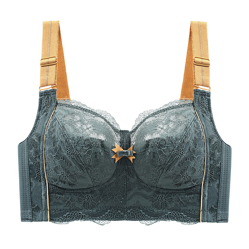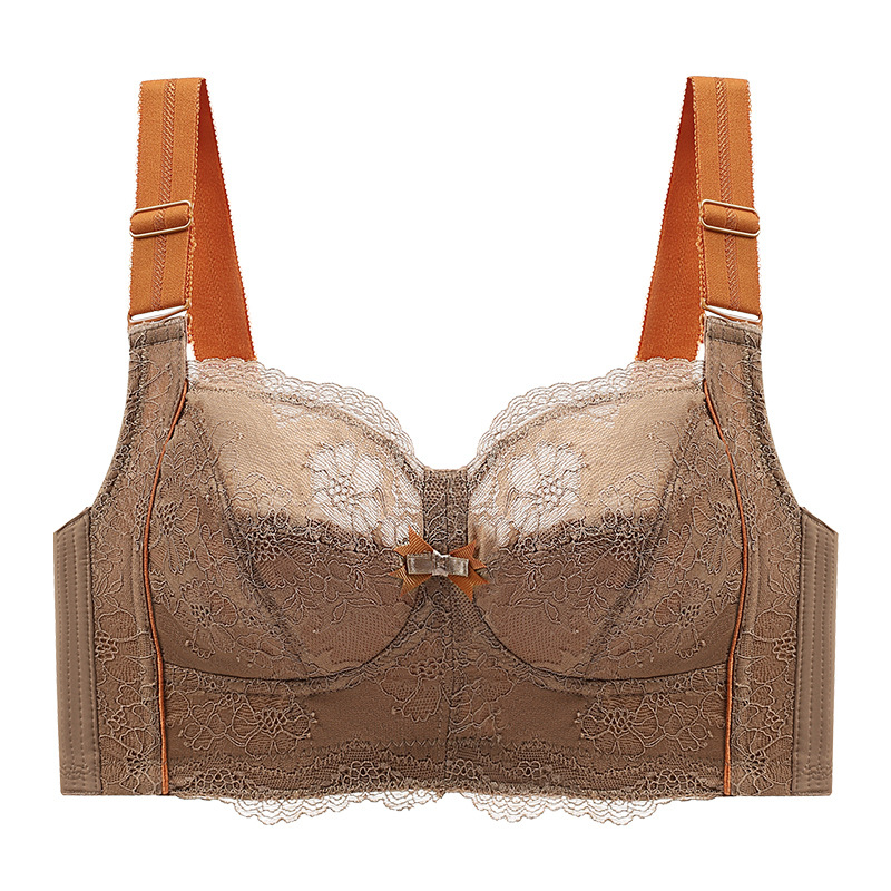 Large-sized full-cup comfortable and breathable pure cotton tight-fitting bra, with a large bust and a small lace side retraction accessory, adjustable type bra