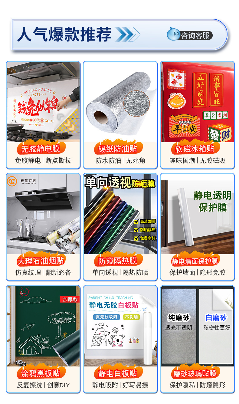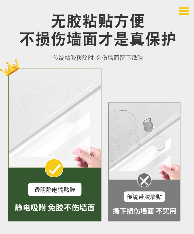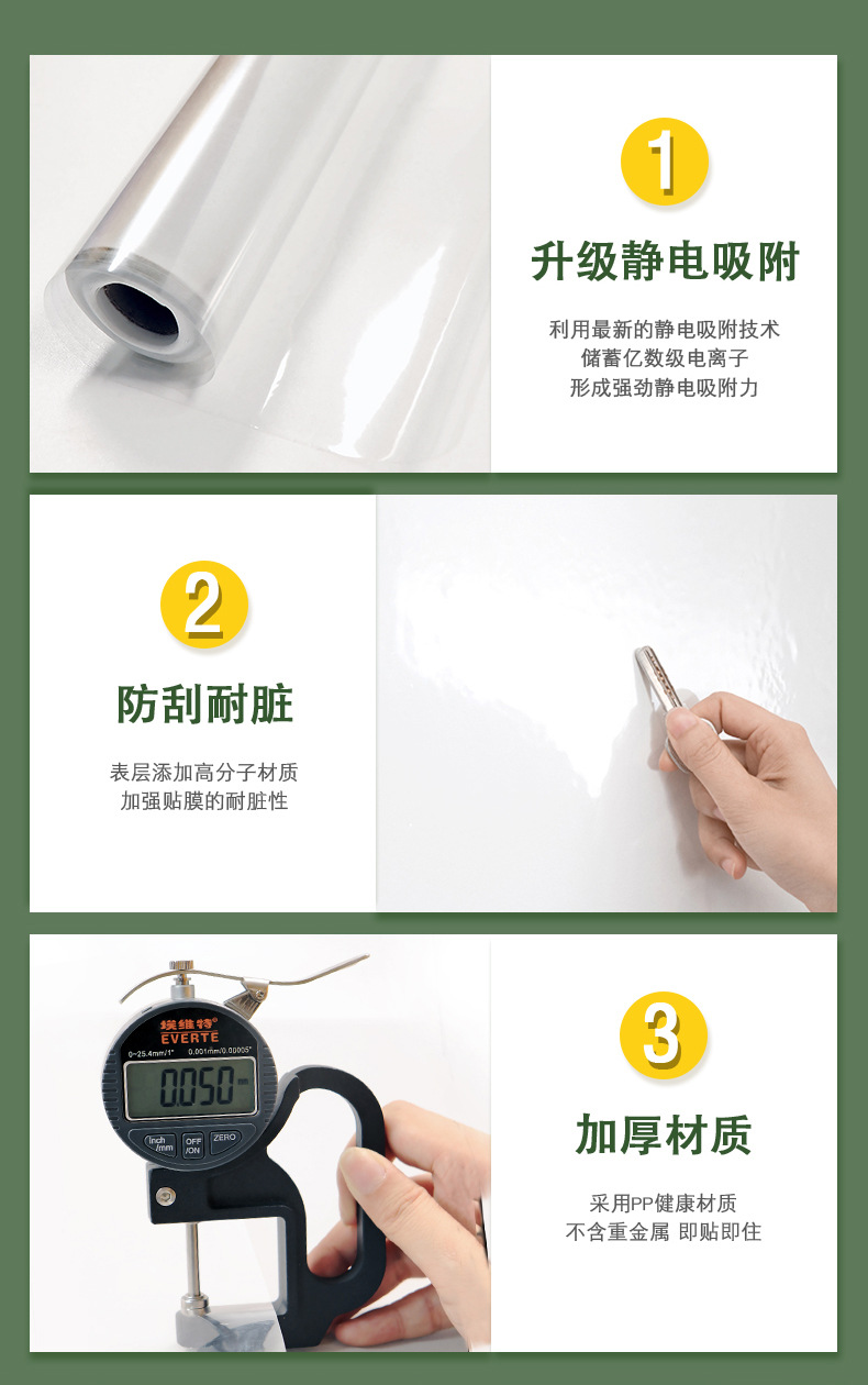 Adopting the latest electrostatic adsorption technology, this glue-free and glue-free product is environmentally friendly and odorless.