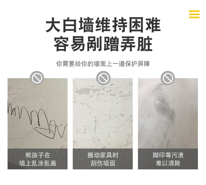 This product is a wall protection static sticker. It is waterproof, dirt-proof, does not damage the wall, and can be removed for random graffiti.