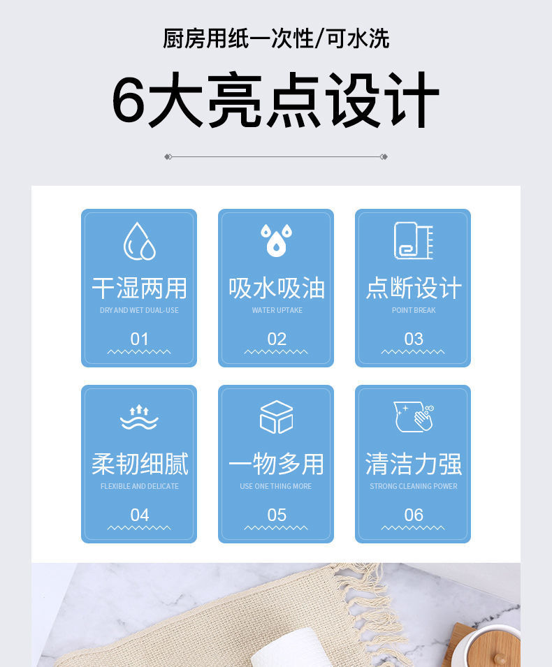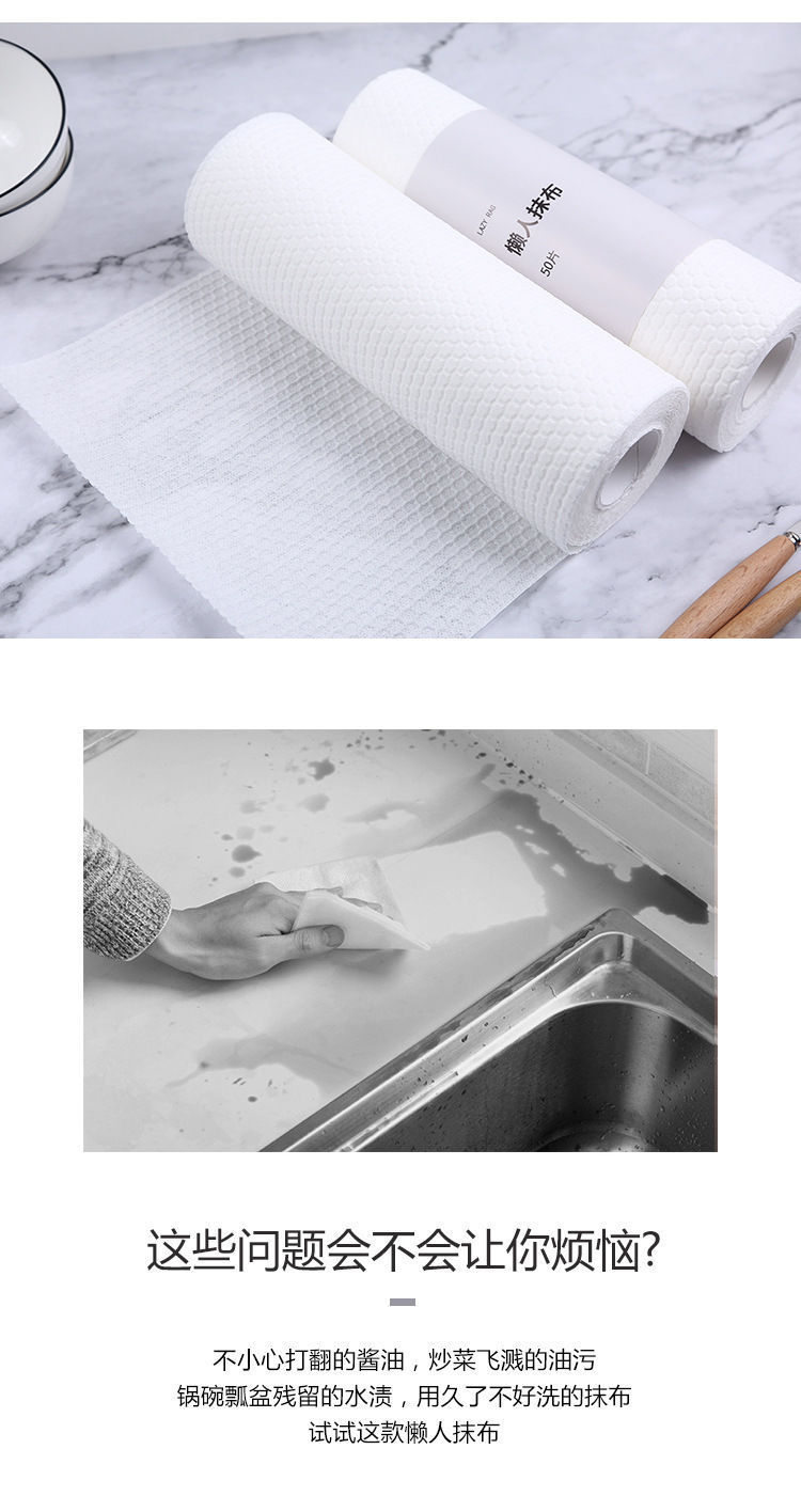 Hygienic, clean, with strong water absorption, soft and washable, not prone to bacterial growth, and no burrs left during wiping. After use, rinse thoroughly with running water and dry to extend its lifespan. Non-fading: There are not many rough edges. The non-woven fabric in the bucket is very convenient to use. If there are tear marks on it, just gently tear them off. No scissors are needed. It's both quick and convenient! 50 tear-off and breakable rags are used to clean various metal, plastic and glassware such as tableware, tea sets and cookware without damaging the surface of the utensils. Wipe the small dust and dirt on furniture and Windows. It can also be used as a hand towel. It is suitable for cleaning work in places such as families, hotels, restaurants, kindergartens and food processing plants. Note: Soaking in water for desizing and rinsing with running water for oil removal are more effective and will not damage the surface of the object. Wash and dry after use to extend its service life.