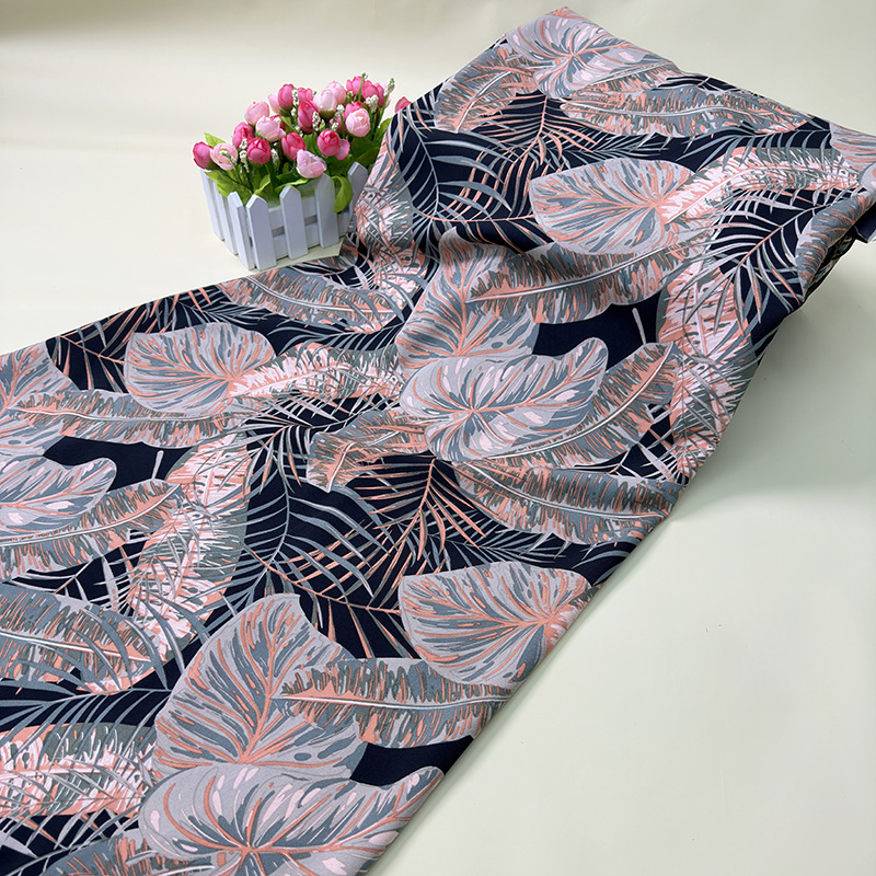Leaf-shaped printed fabric, fashionable beach dress, printed fabric, fashionable shirt, dress fabric wholesale, polyester printed