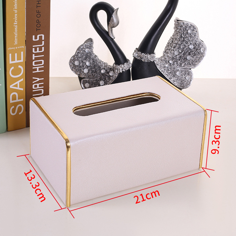 Leather gold-edge tissue box, custom logo, living room remote control, tissue storage box, hotel and restaurant tissue box