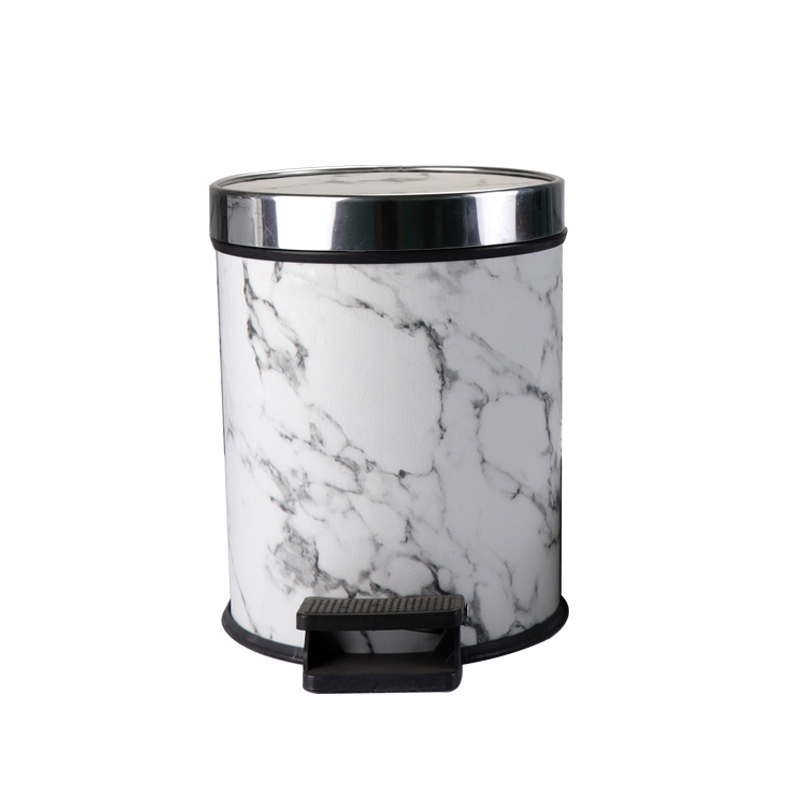 leather pvc pedal Trash can, Pedal household kitchen and bathroom Trash can, Commercial guest Room Trash can, Black gold Marble-patterned white gold Marble 8056#5L
