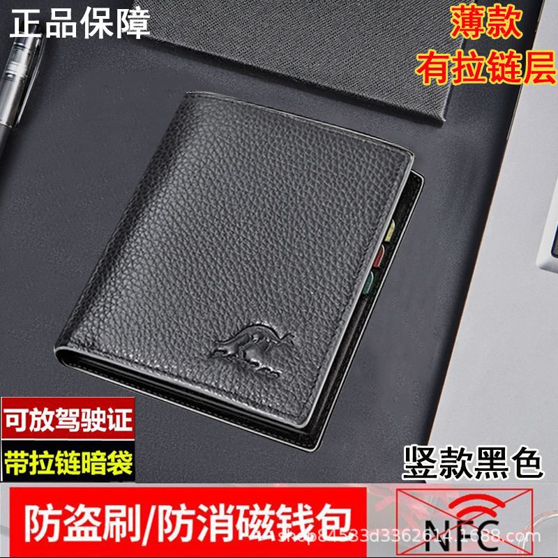 Black horizontal style, light and thin [with zipper, anti-demagnetization cowhide]