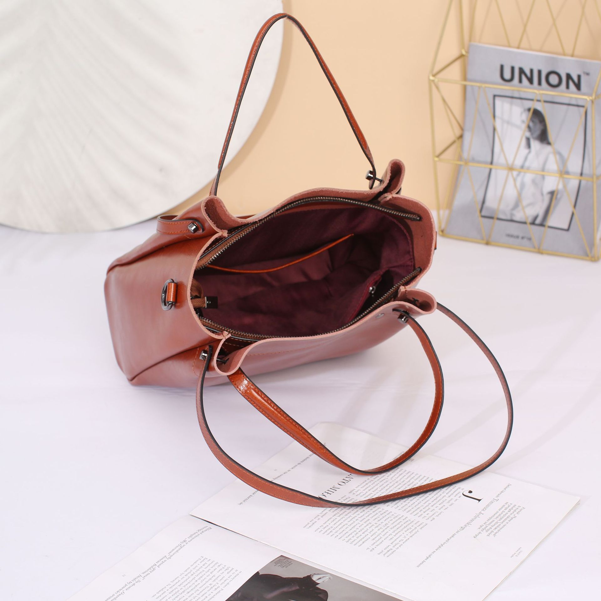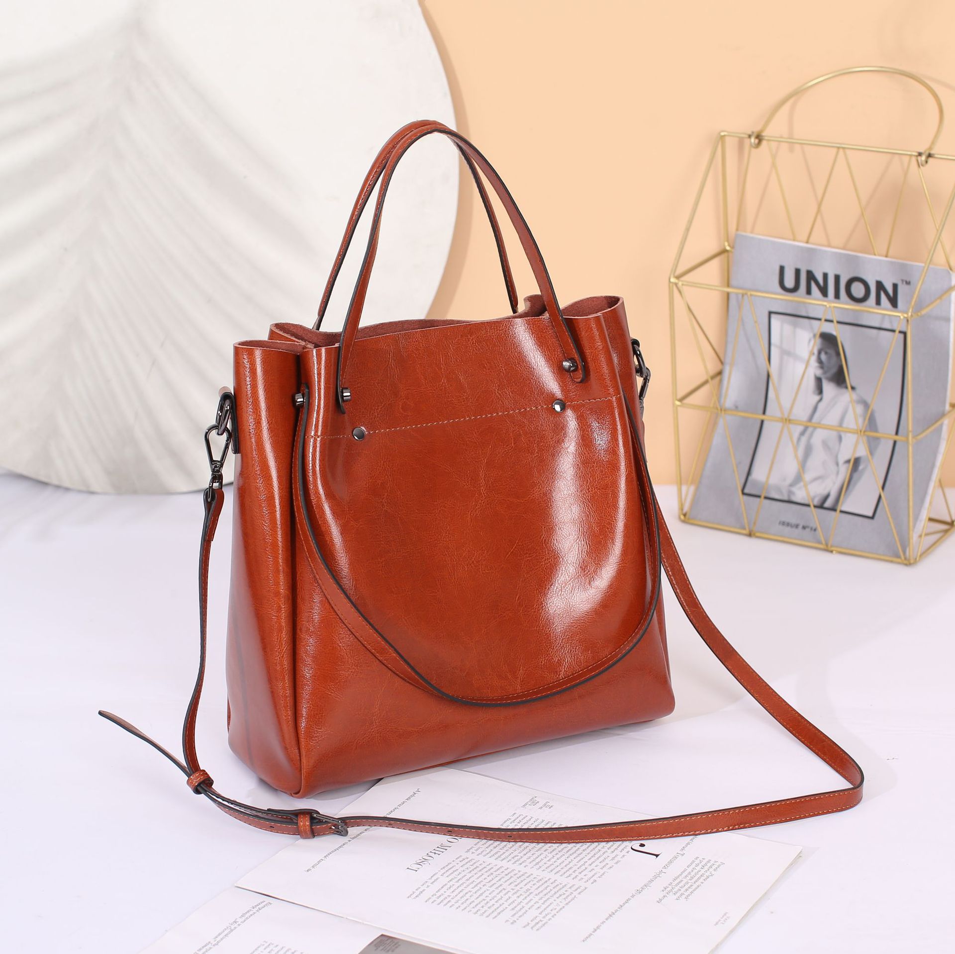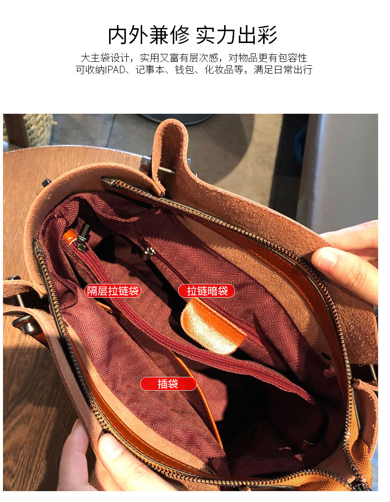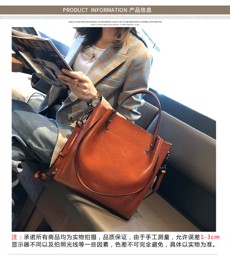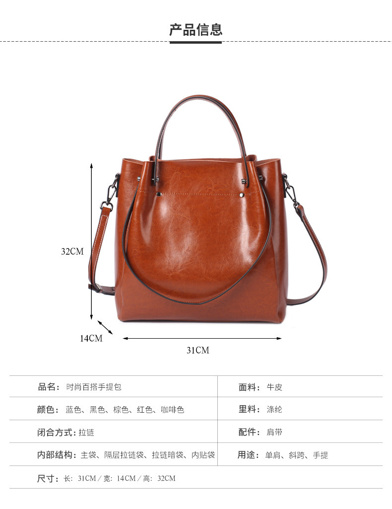 Leather women's bag 2023 new style fashionable women's bag, large capacity hand-held crossbody bag, bucket bag, niche design large bag