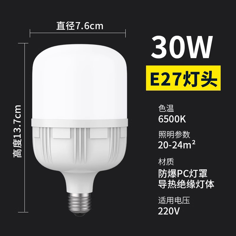 LED energy-saving lamp for household lighting, ultra-bright screw socket, threaded socket, e27 bulb, high power 50w