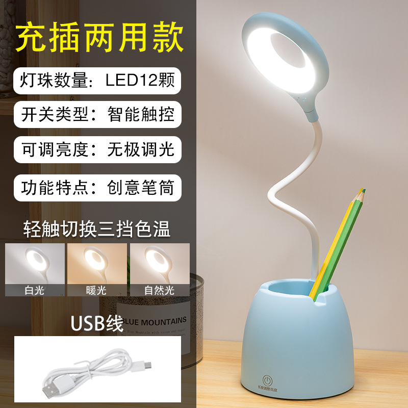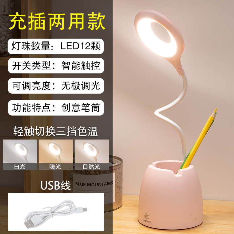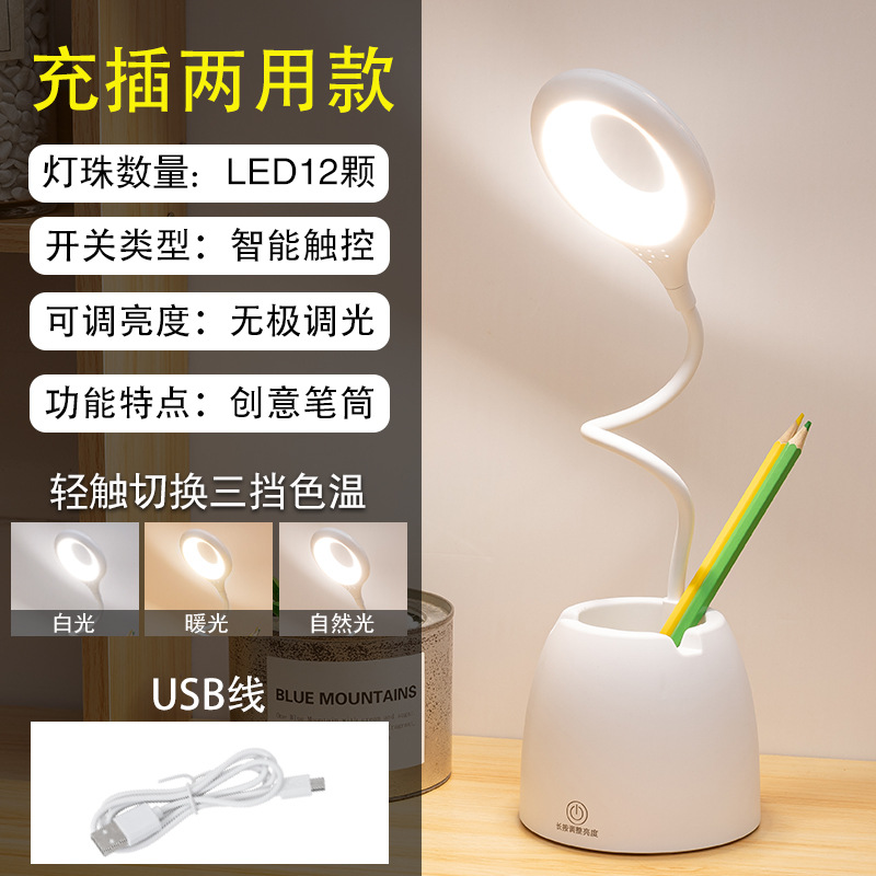 led eye-protecting desk lamp, creative pen holder, touch book holder, bedroom student reading lamp, charging clip, learning small desk lamp