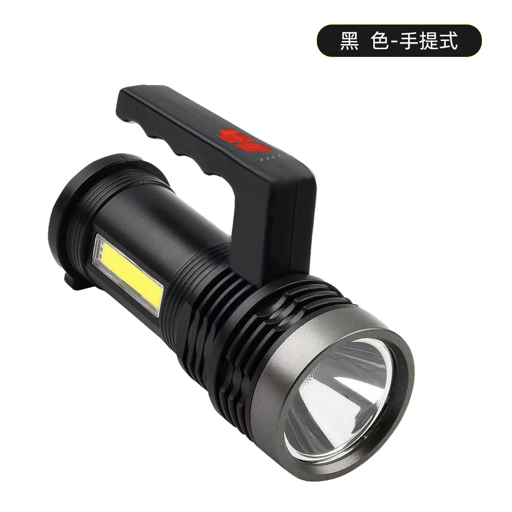 LED high-intensity flashlight, high-brightness long-range electric display COB side light, emergency light, portable searchlight, outdoor camping light