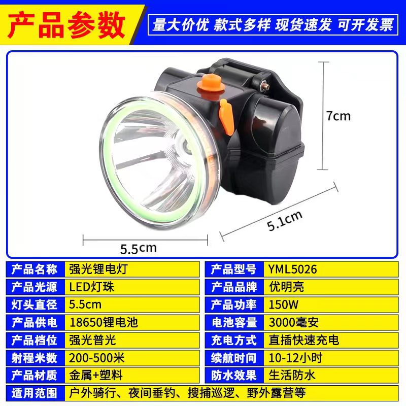 5206 150 dual lithium battery, 5.5 cm lamp head, strong light for 6 to 8 hours