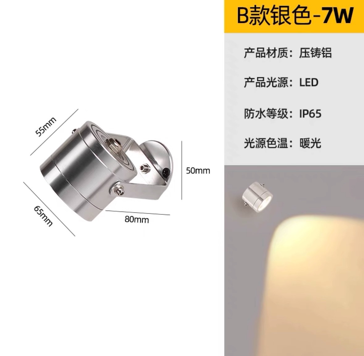 Model B Silver Shell 7W Warm Light - Electric connection version