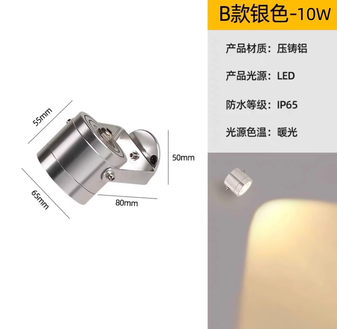 Model B Silver Shell 10W Warm Light - Electrically connected version