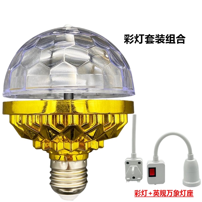 LED stage light, golden little magic ball, KTV atmosphere light, RGB six-color magic ball light, E27 seven-color rotating crystal bulb