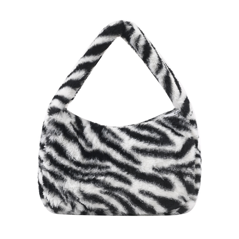 Leopard print plush fabric women's bag, new autumn and winter fashion trend, single-shoulder armpit bag, hand-held furry bag, hand-carried bag