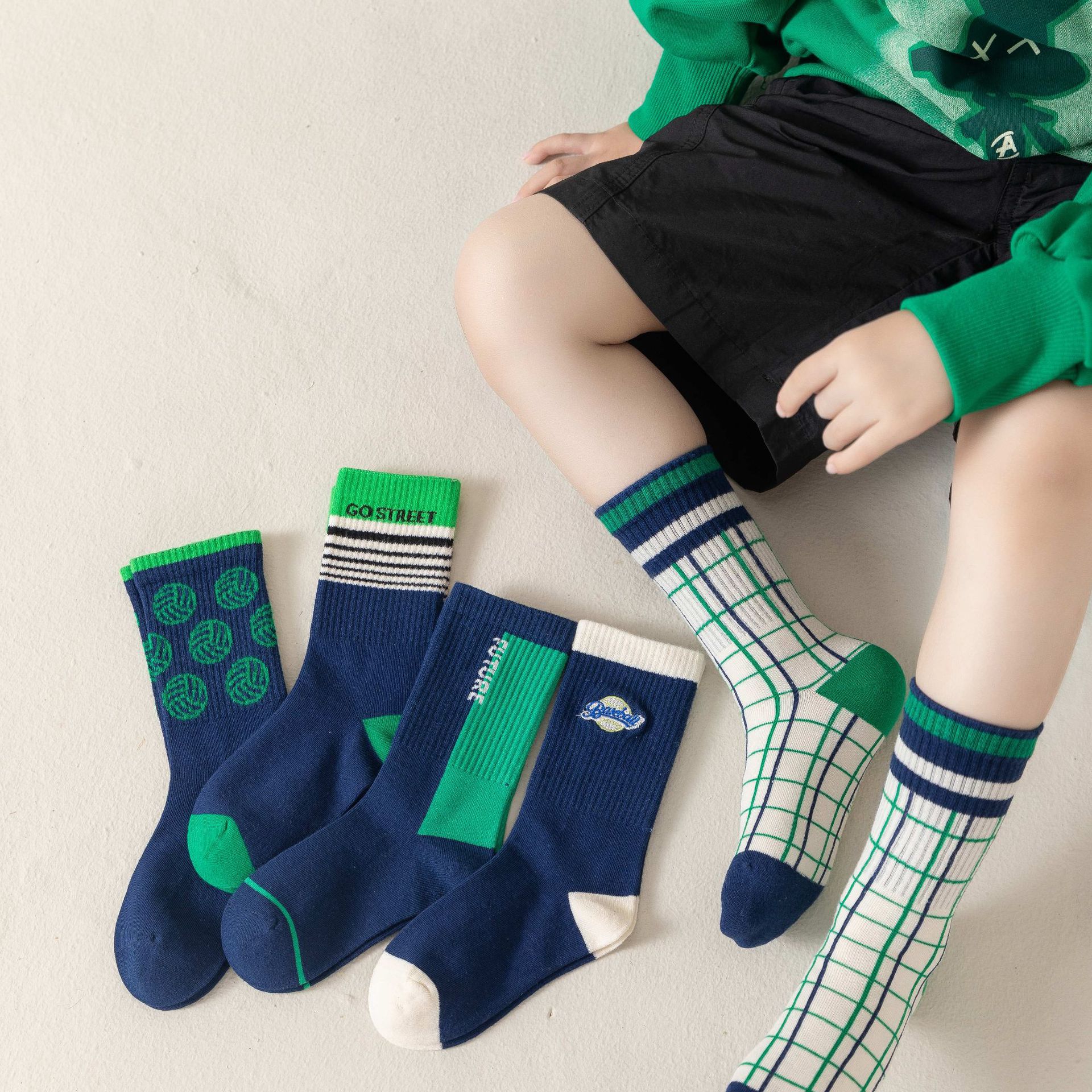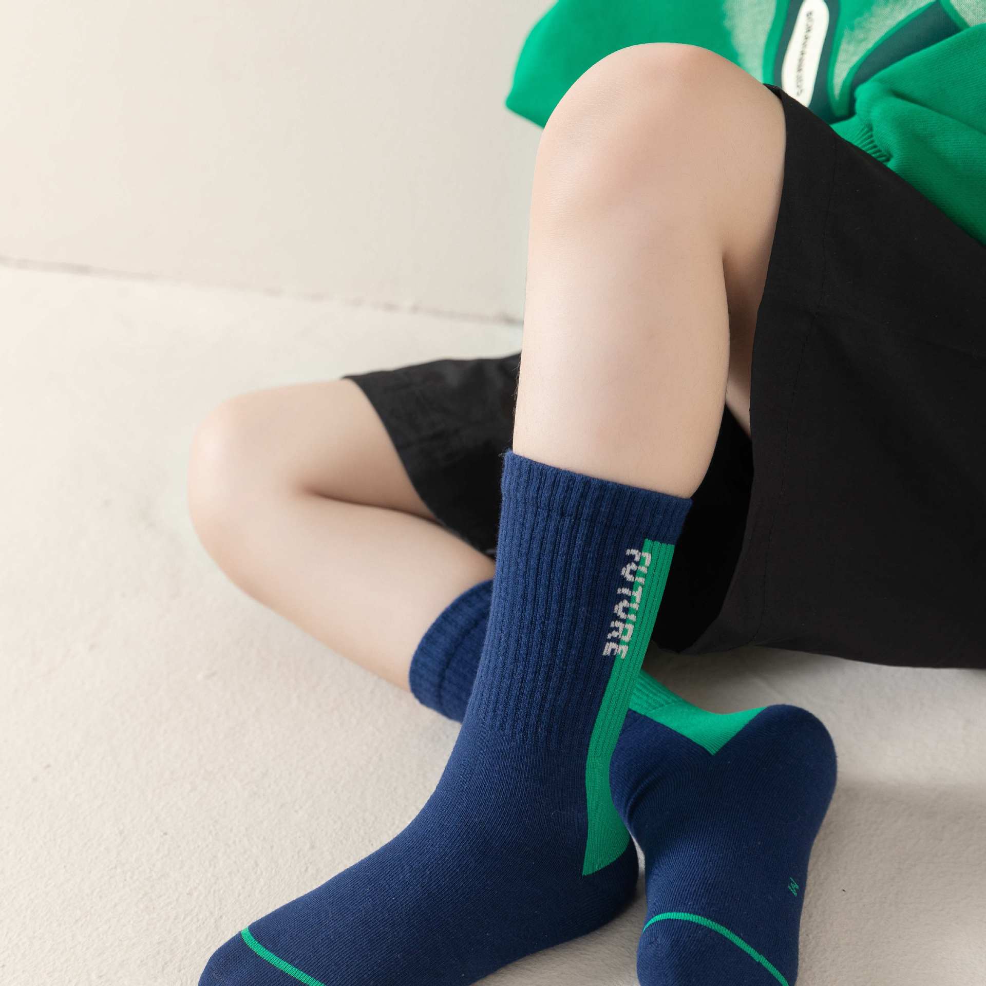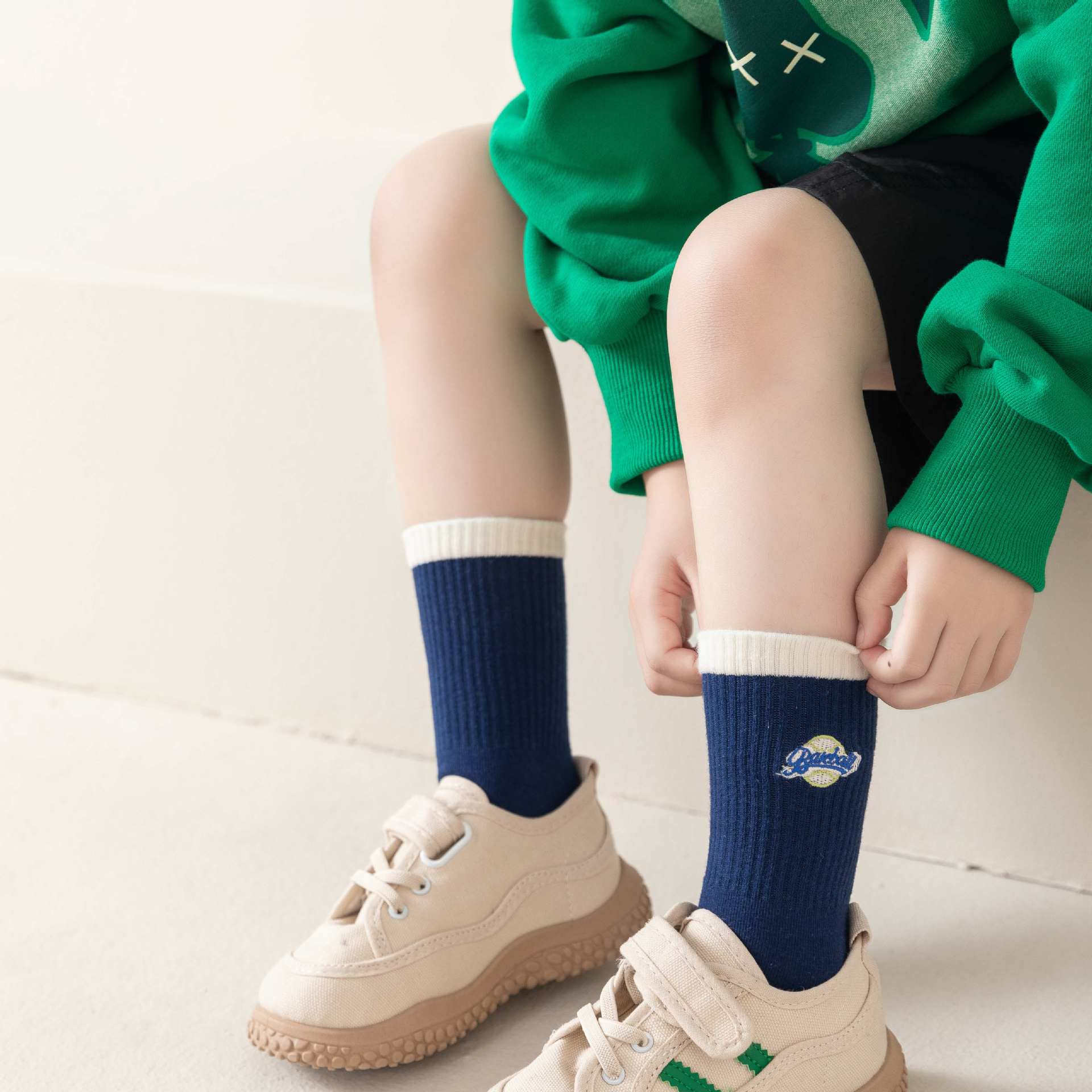 Letter striped boys' socks, new Spring and autumn Class A cotton socks, skin-friendly and breathable children's socks, trendy and versatile children's socks with contrasting colors