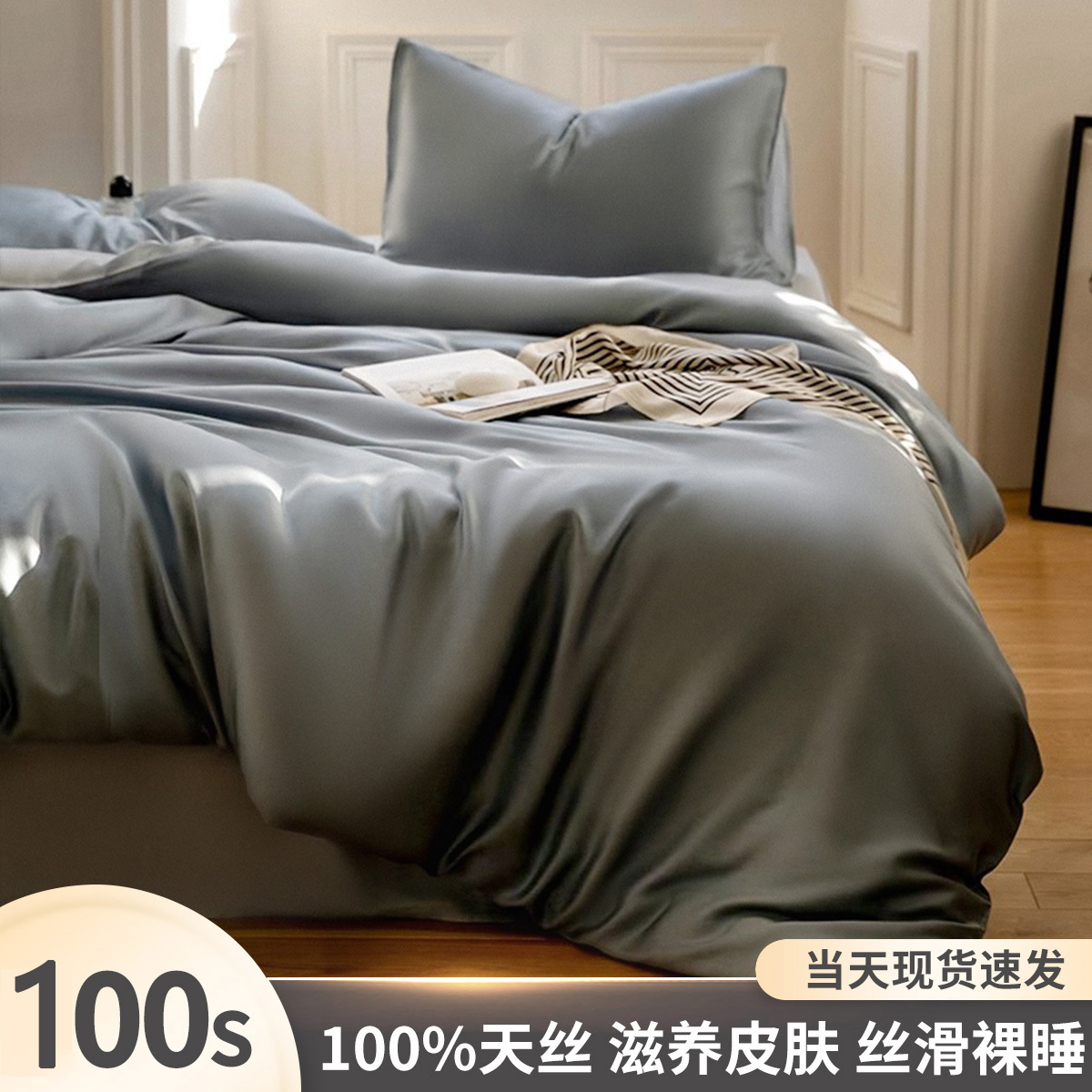 LF grade 100 Austrian Lenzing Tencel Summer Bed four-piece set, ice silk summer cool quilt cover, bed hat, bed sheet, Silk
