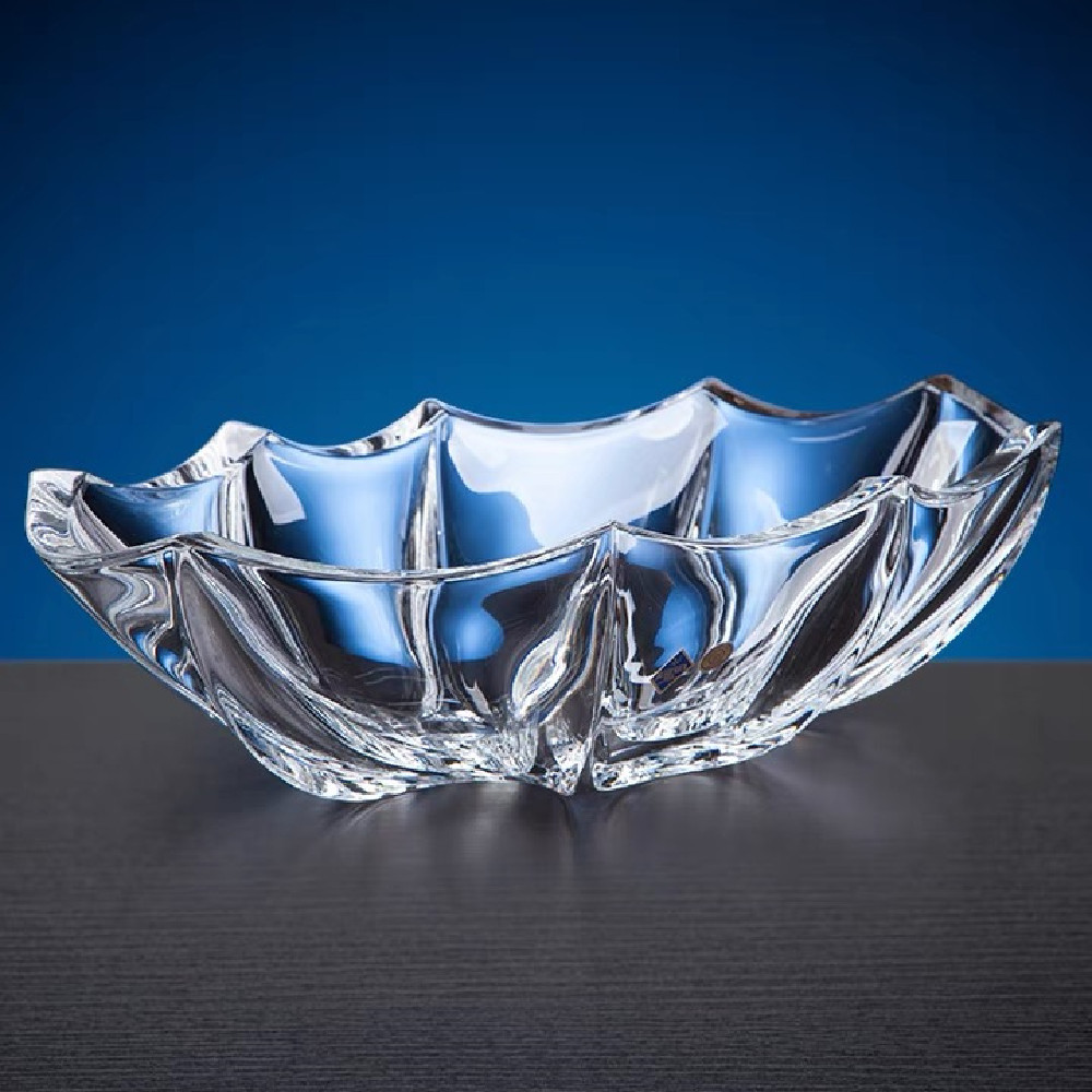 Light luxury creative crystal glass fruit box, irregular-shaped sail fruit plate, modern living room fruit bowl, home decoration candy plate