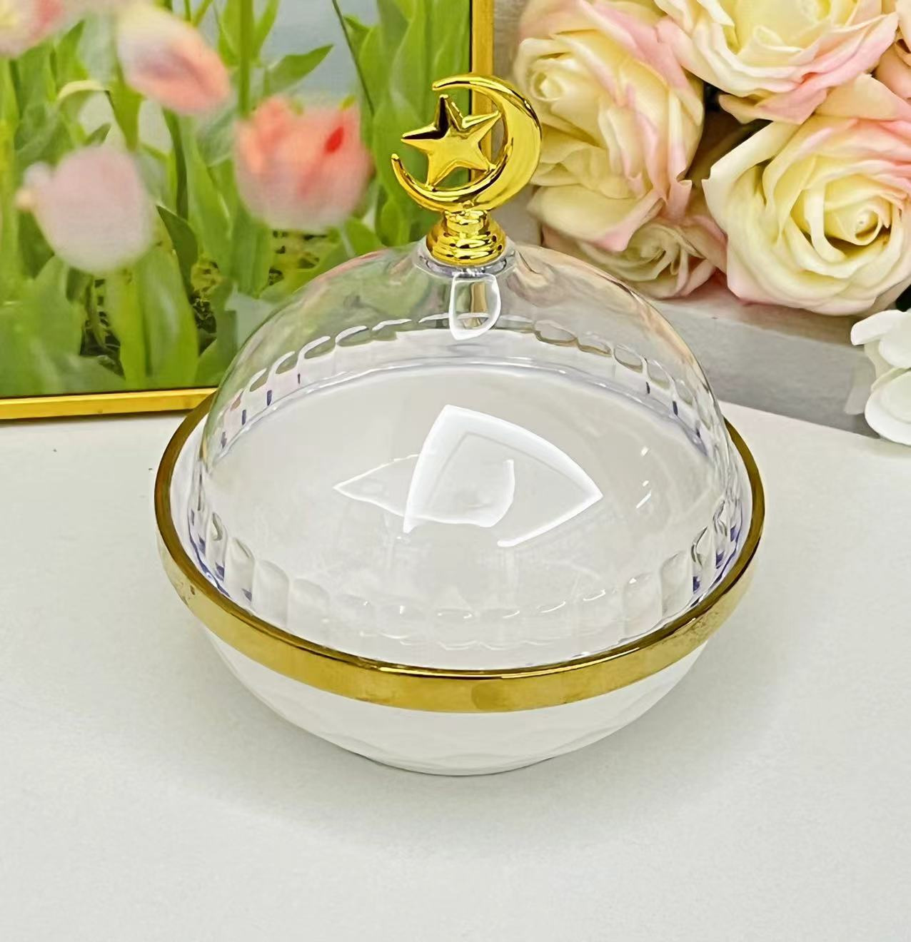 Light luxury home furnishings: multi-compartment fruit plates, dessert prints, covered bowls, European-style golden ceramic tea cups and plates, porcelain