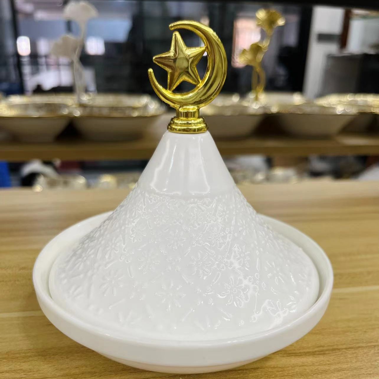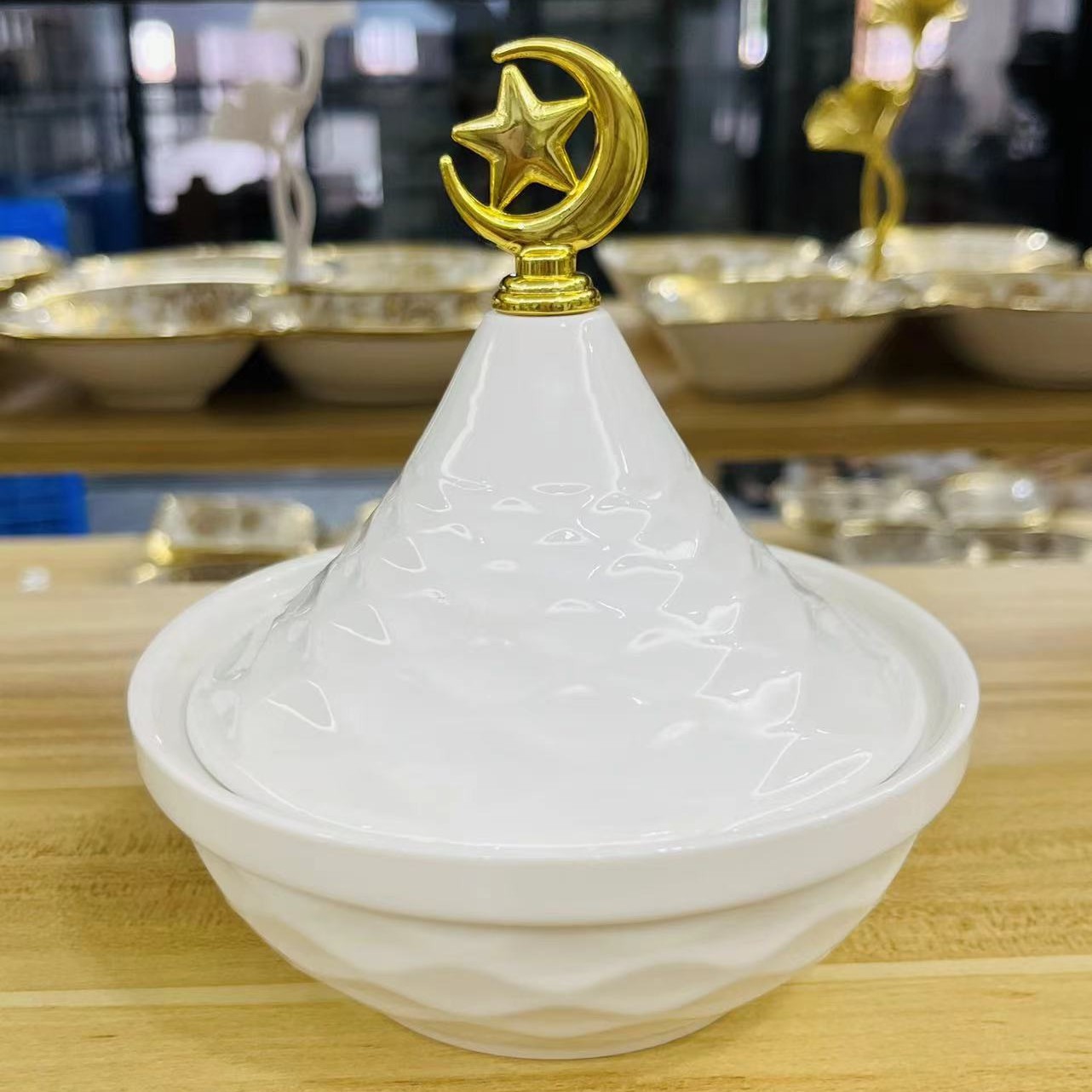 Light luxury home furnishings: multi-compartment fruit plates, dessert prints, covered bowls, European-style golden ceramic tea cups and plates, porcelain