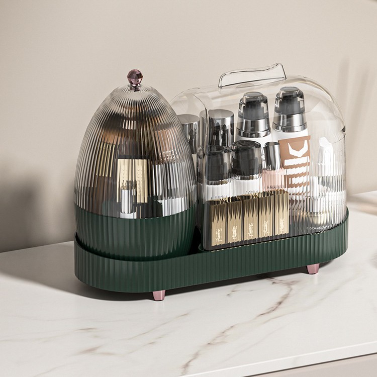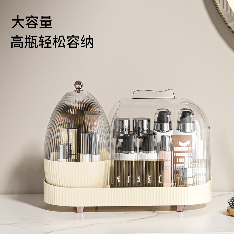 Light luxury style rotating cosmetics dust-proof storage box, makeup brush storage box, skin care product rack