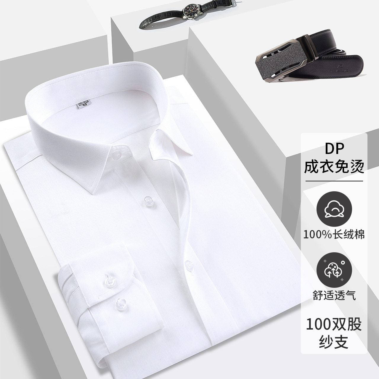 Light luxury white men's shirt, high-end men's pure cotton shirt, 100% all-cotton business ready-to-wear, no-iron white shirt