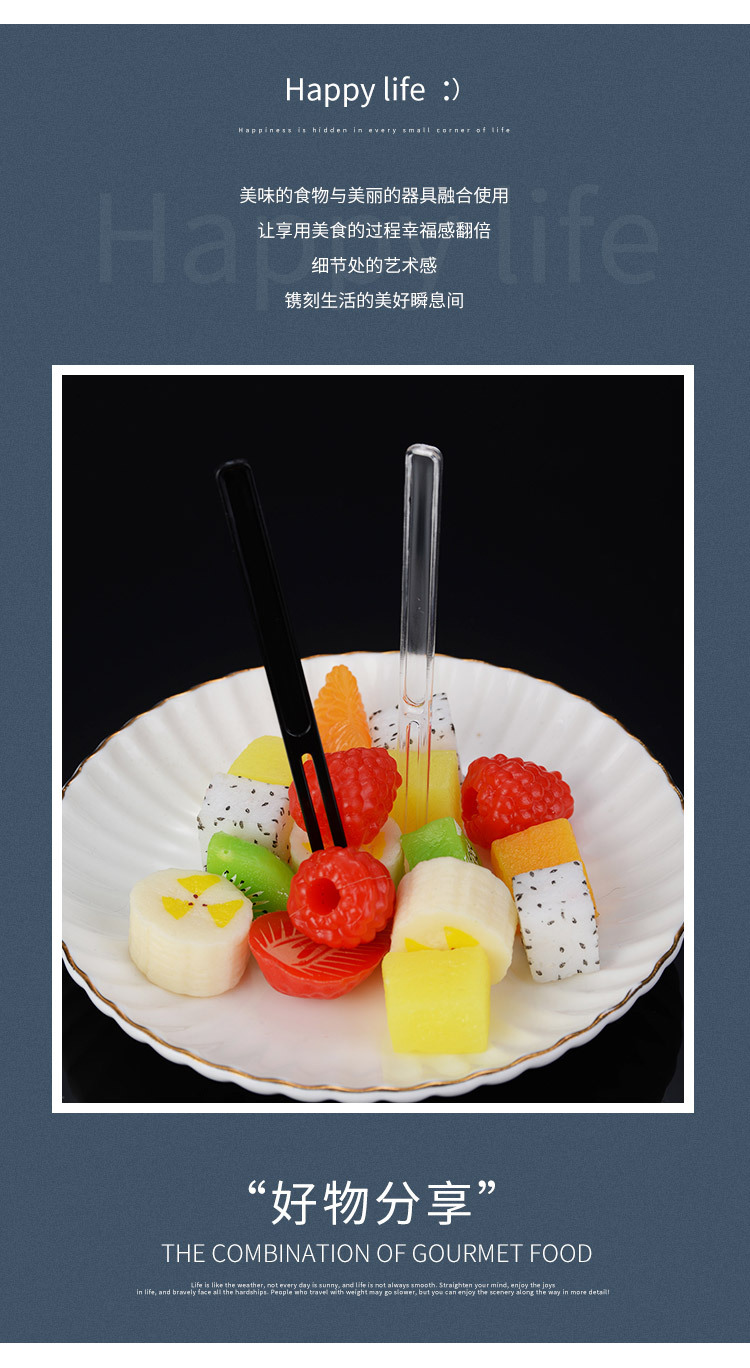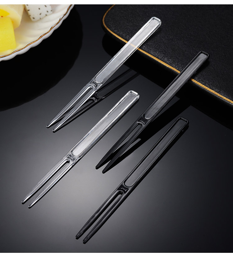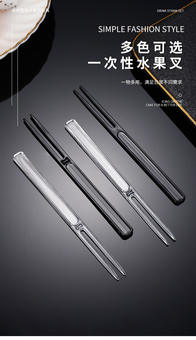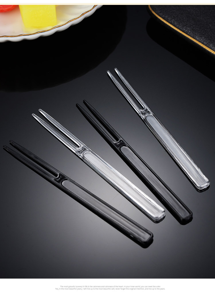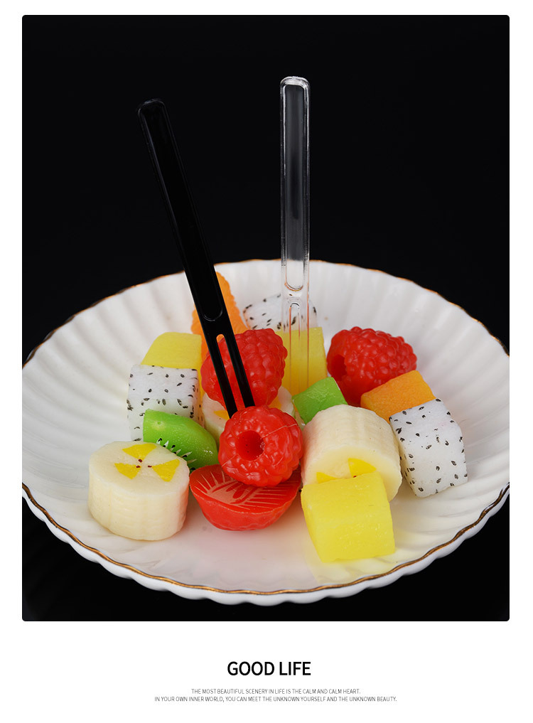 Liheng Factory's disposable fruit fork, plastic transparent black fruit skewer, individually packaged edible grade 1000 pieces