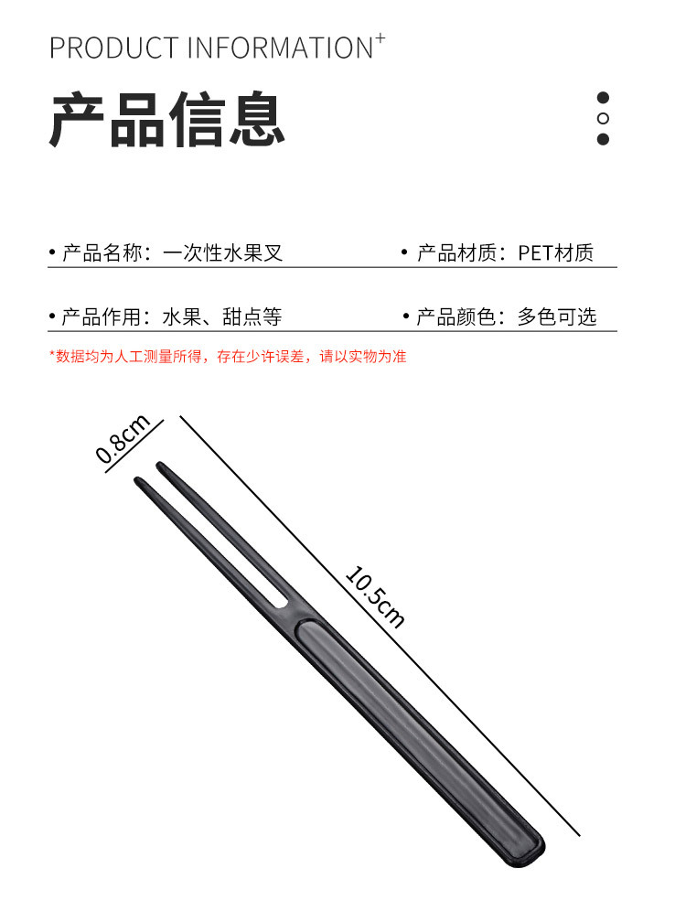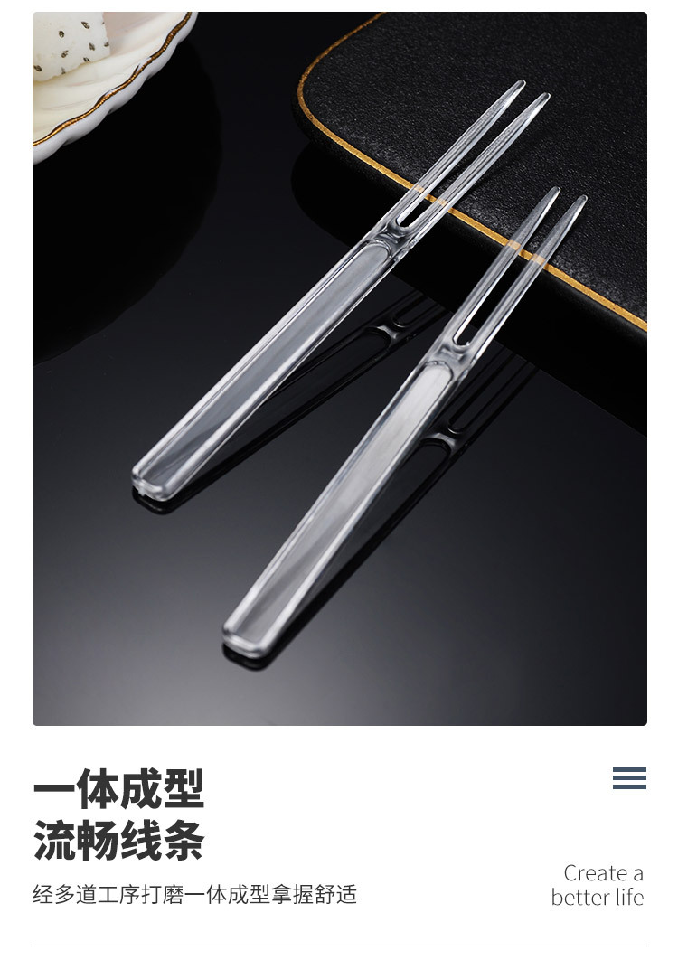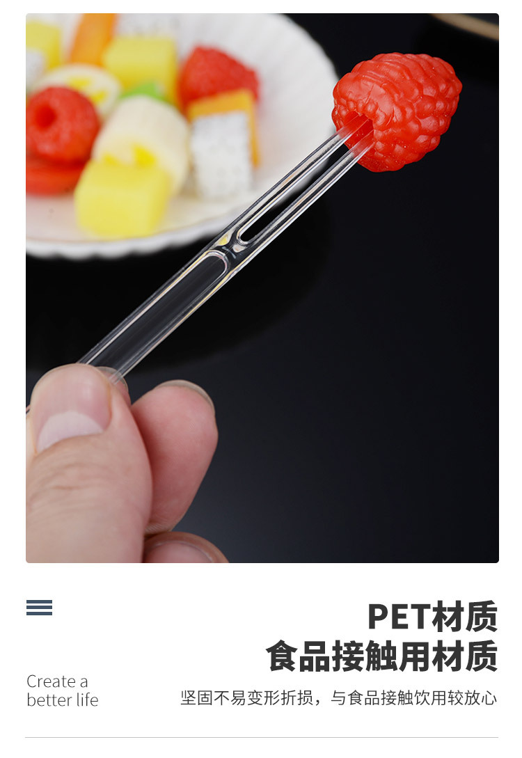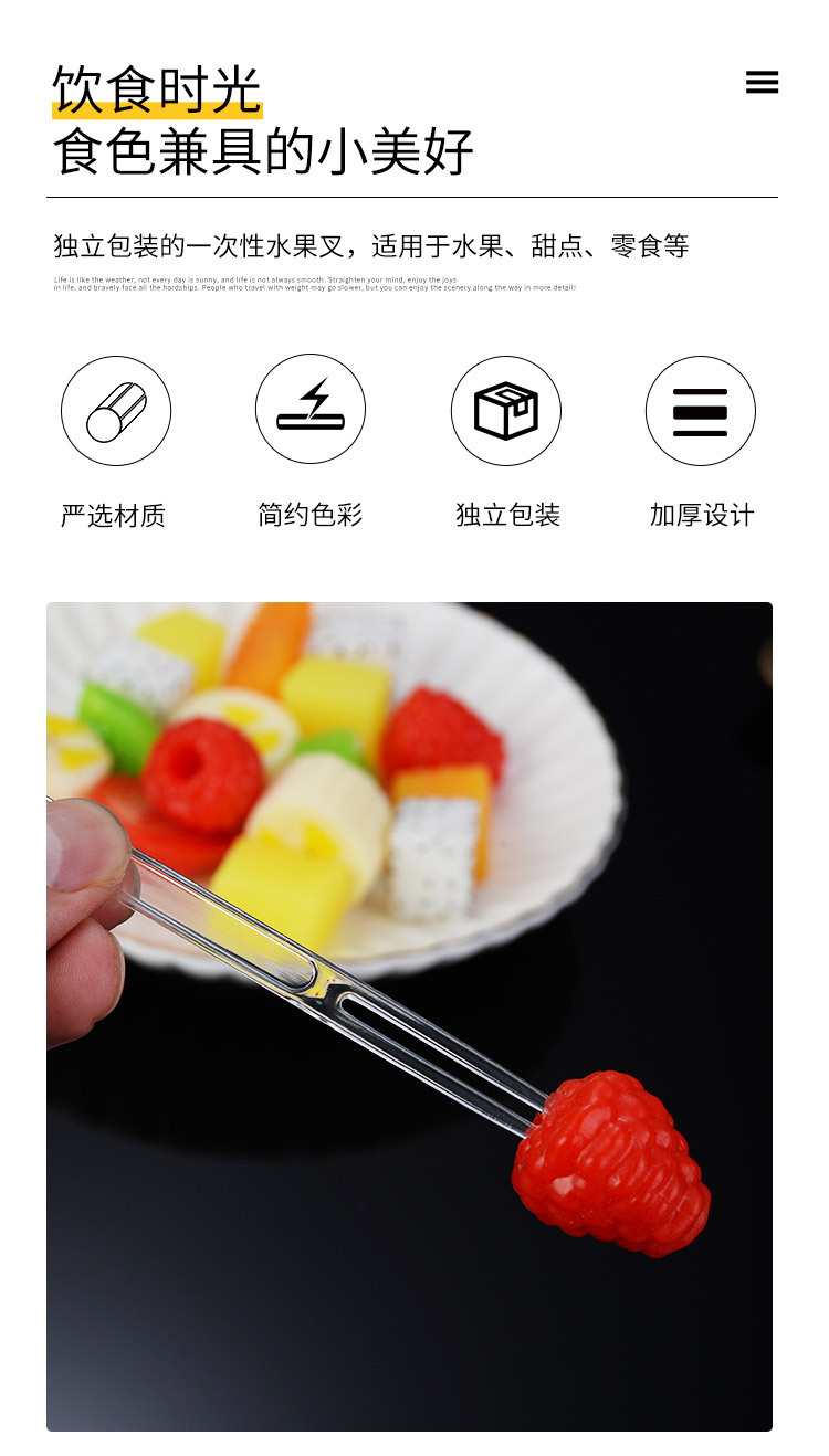 Liheng Factory's disposable fruit fork, plastic transparent black fruit skewer, individually packaged edible grade 1000 pieces