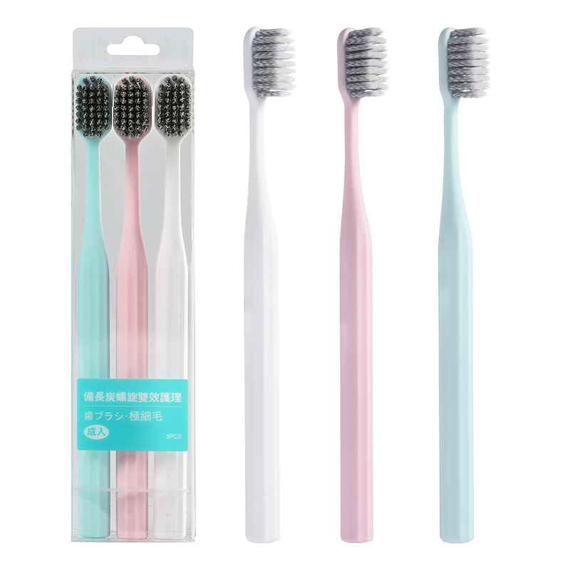 Linglexi Spiral Dual-Effect Care Toothbrush 3-piece set, Adult couple wide-head soft-bristled toothbrush, home cleaning and gum care 1 box of 3 pieces