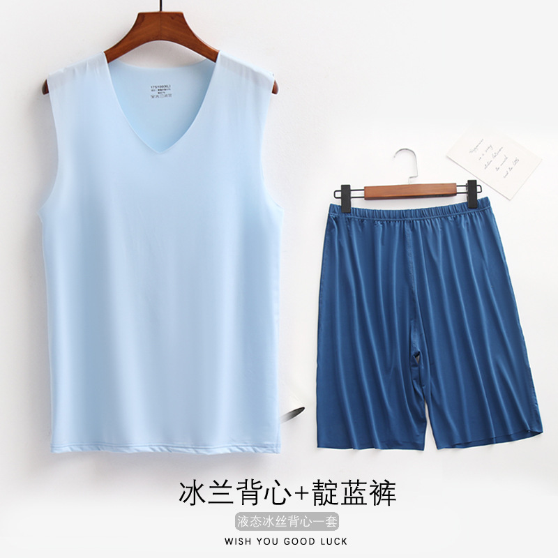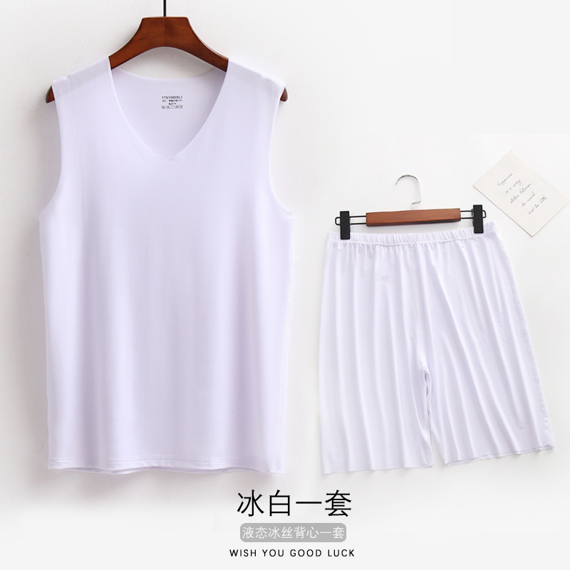 Liquid ice, silky smooth and seamless, men's wide-shoulder V-neck vest, pajamas, pajama pants set, five-inch shorts, home wear
