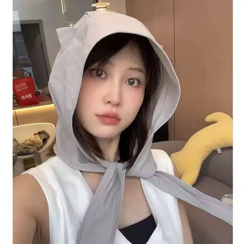 Little Devil Strap quick-drying sun protection hat, women's thin ear-protecting headscarf hat, cute cat ears, niche outing