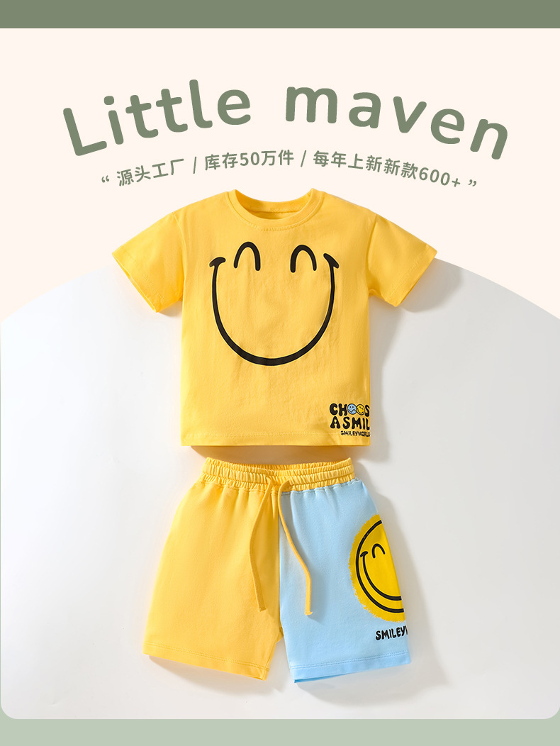 Little maven Boys' set factory direct supply European and American children's clothing T-shirt short-sleeved color cotton children's set