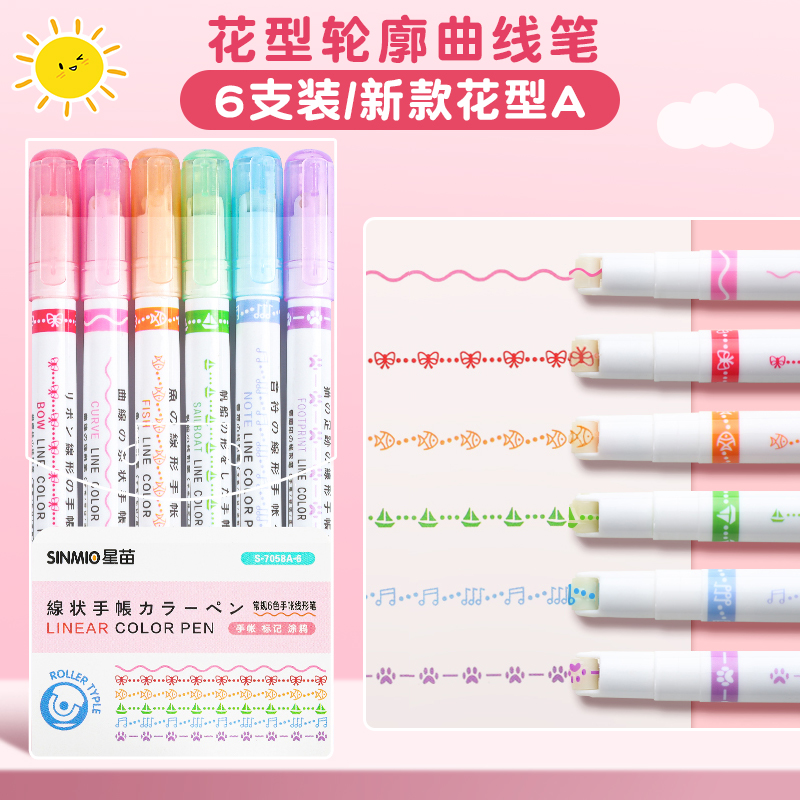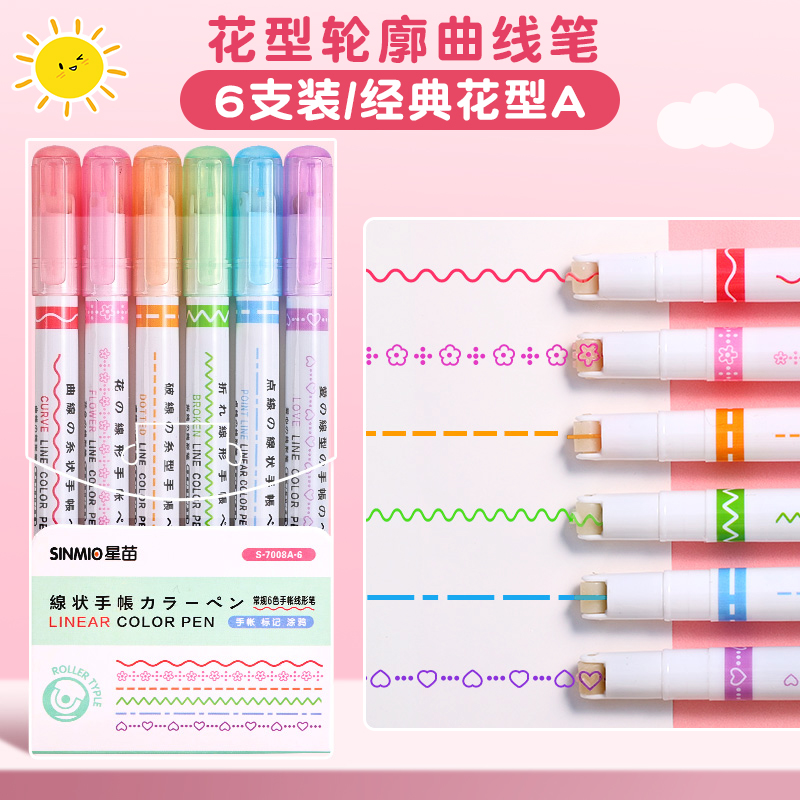 6 Single-headed flower-shaped contour pens [Classic Pattern A]