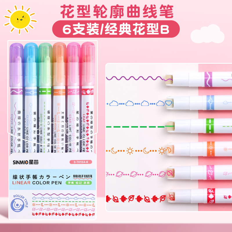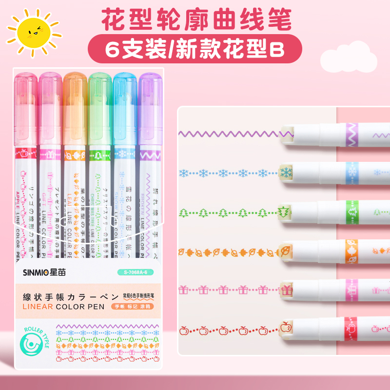 6 Single-headed flower-shaped contour pens [Classic Pattern B]
