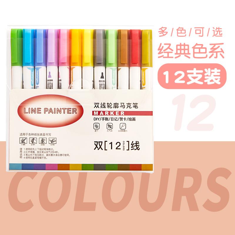 【 Upgraded Version - Mixed Release of 2 Packages 】 12-piece set of double-line contour pens
