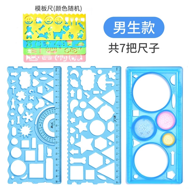 Men's style [7-piece Set] 2 painting rulers + 1 kaleidogram ruler + 4 small rulers