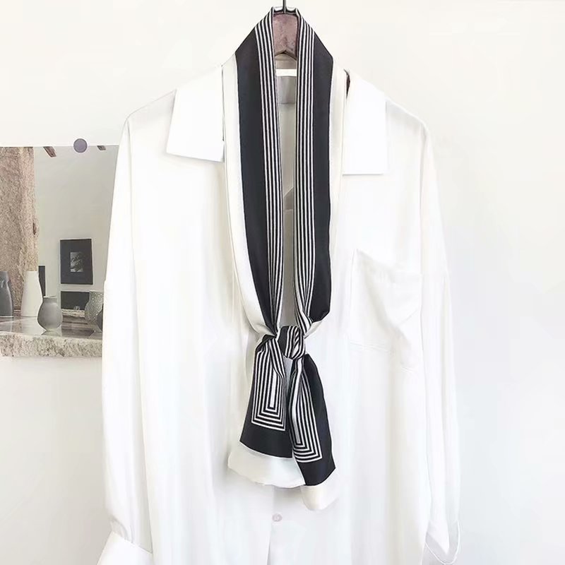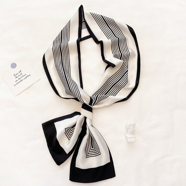 Live-streaming bestseller: 14*145 double-layer scarf tied hair bag with lines, available for sale all year round, smooth silk scarf