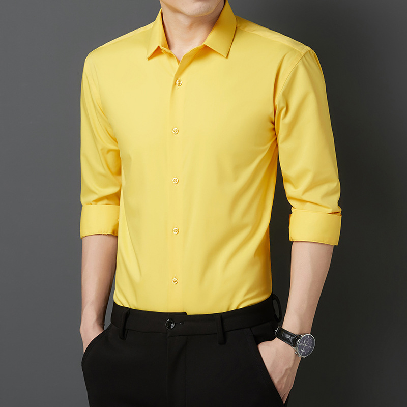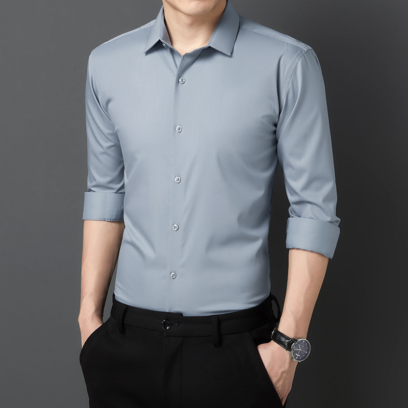 Live-streaming seamless men's long-sleeved shirt made of bamboo fiber, wrinkle-free and wrinkle-resistant, business professional work groom's suit, one-piece delivery