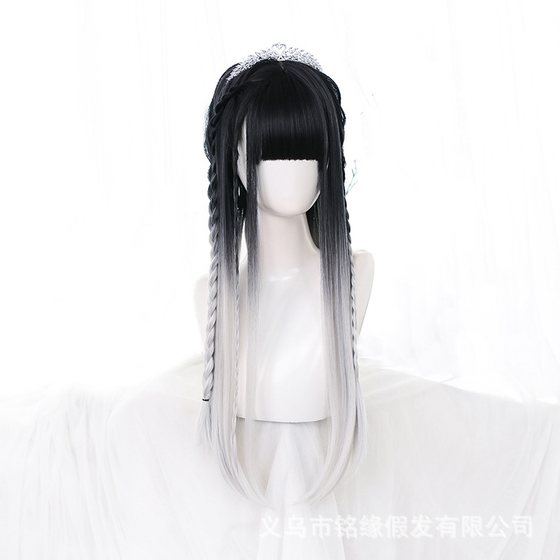 lolita wig for women, European and American black and white gradient full head set, entire high-temperature silk chemical fiber cos anime wig head set