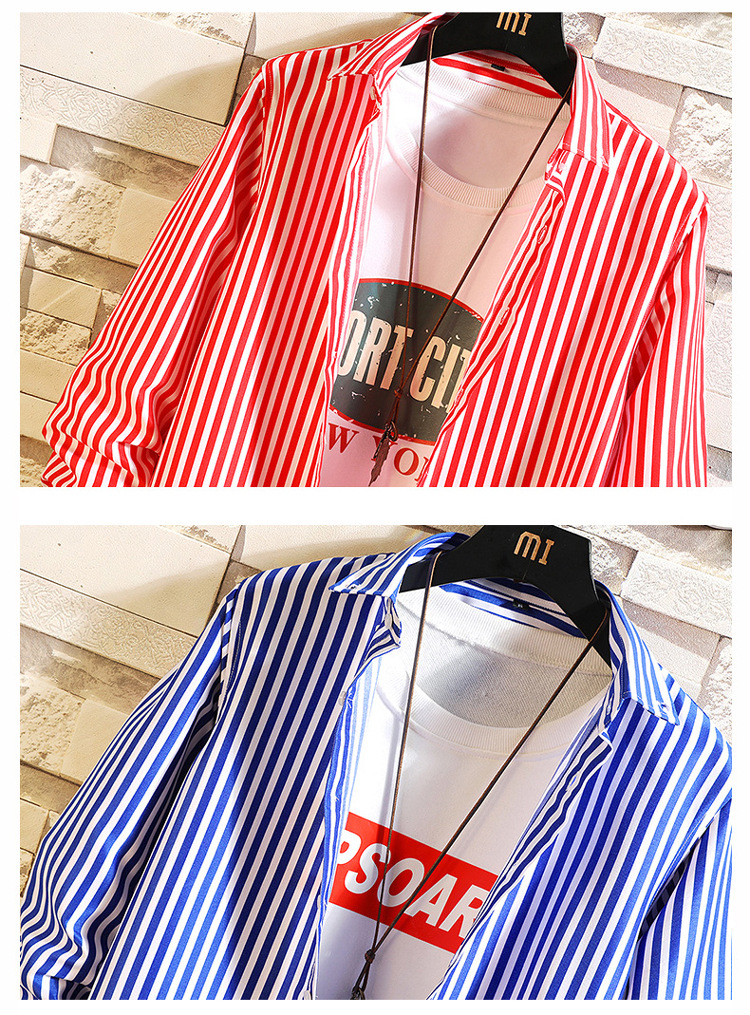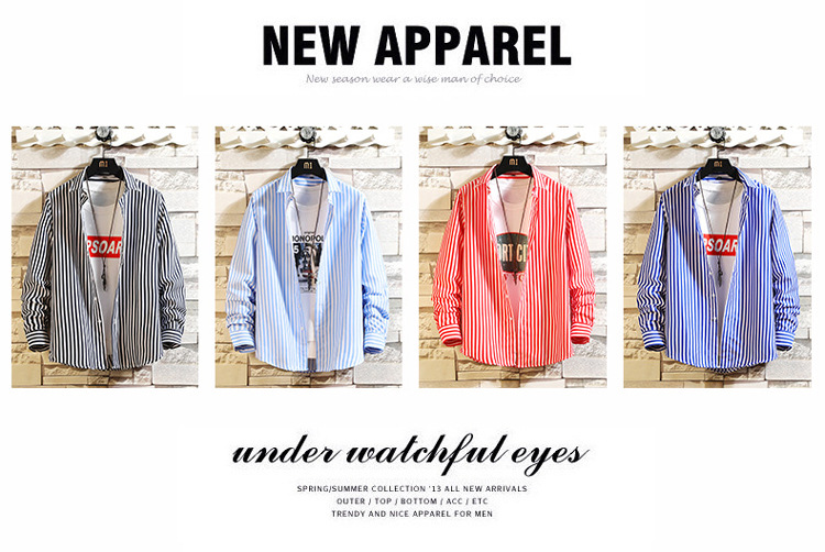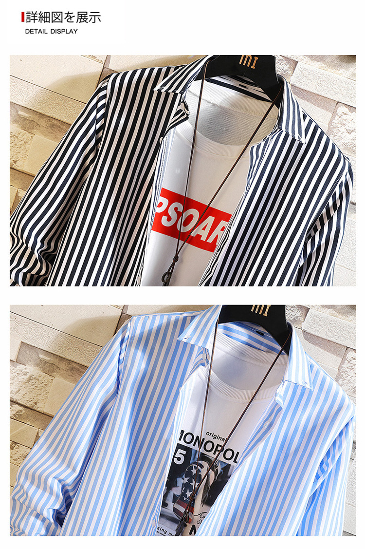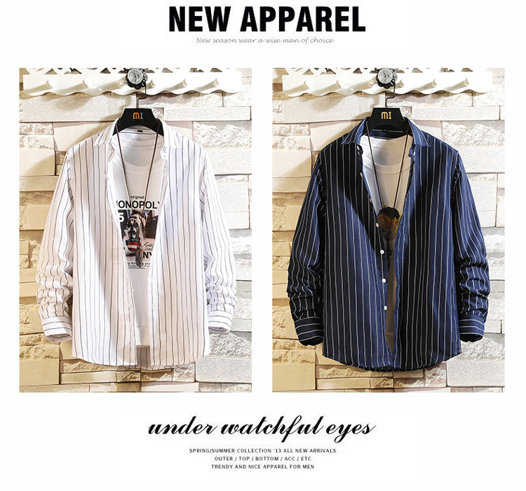 Long-sleeved shirt men 2023 new style casual striped shirt men's trendy and fashionable young men's shirt one-piece consignment