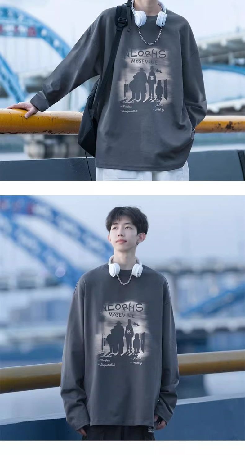 Long-sleeved T-shirt men's spring and autumn new round-neck top, pure cotton American style heavyweight versatile casual Korean-style pullover trend