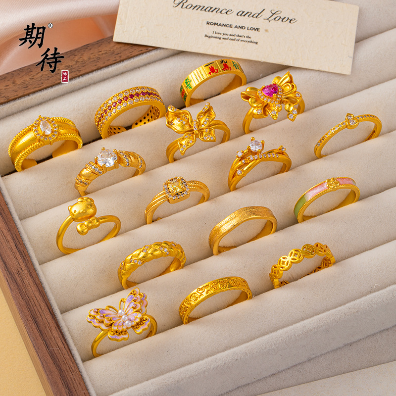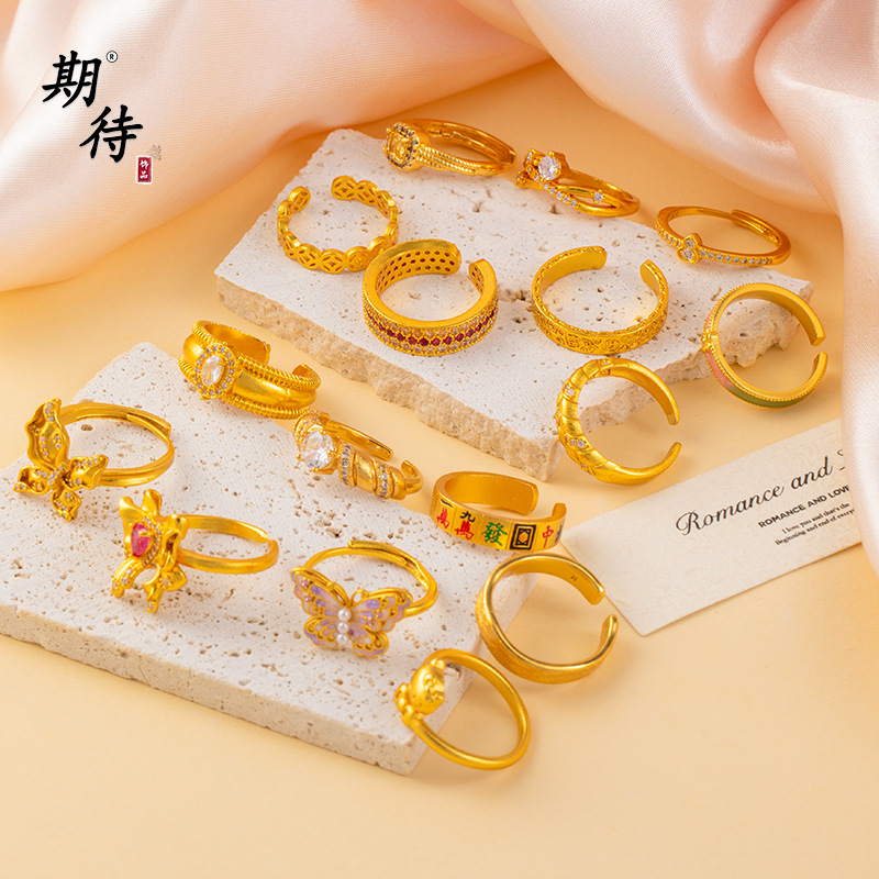 Looking forward to the traditional sandgold ring with diamonds for ladies that won't fade for a long time. This is a unique, sweet and individual open butterfly sandgold ring