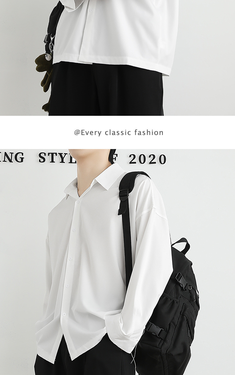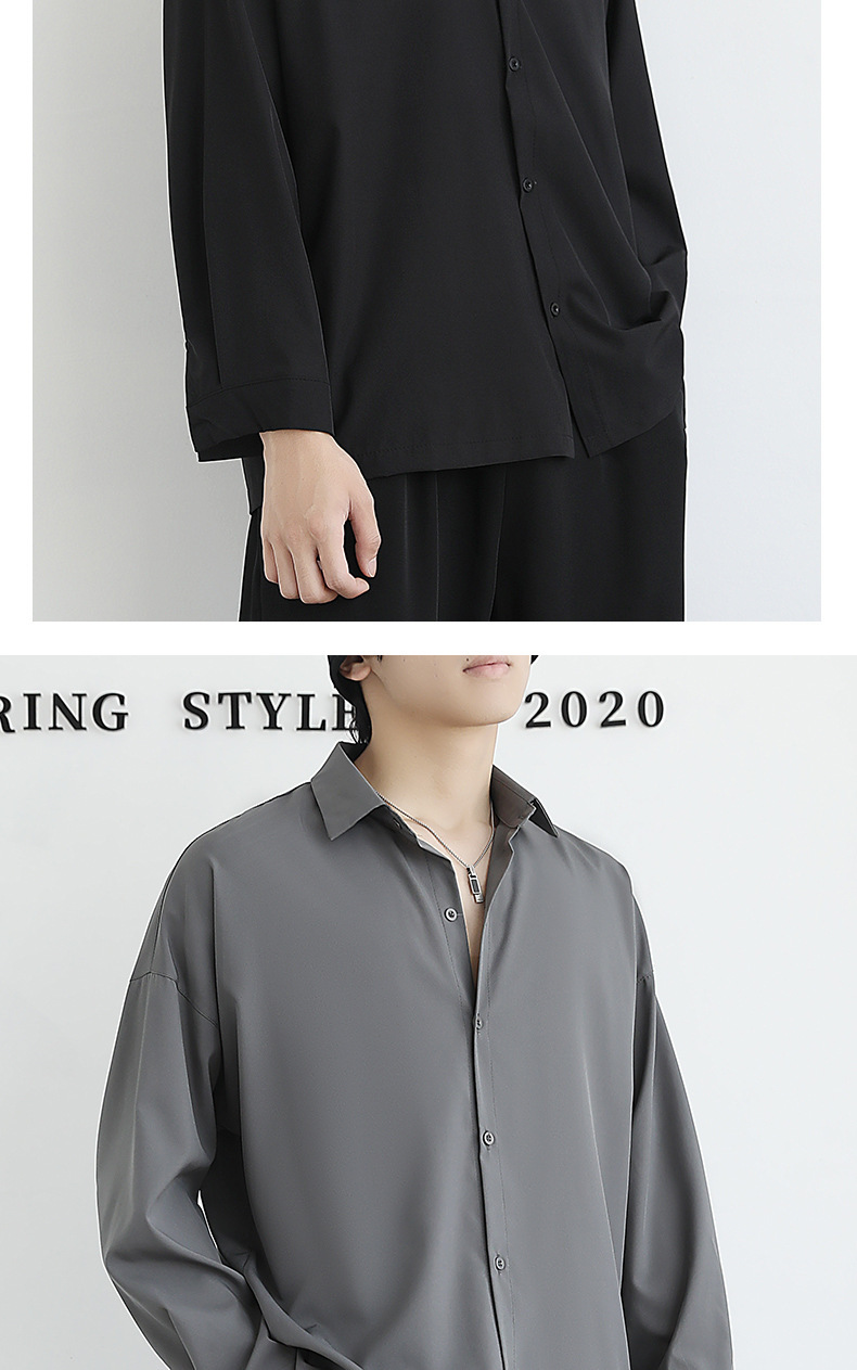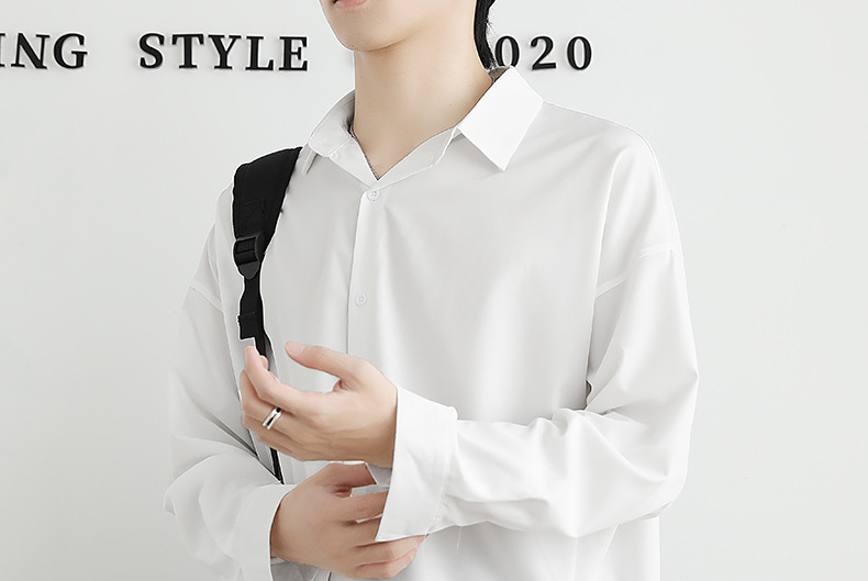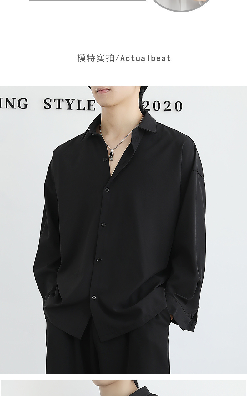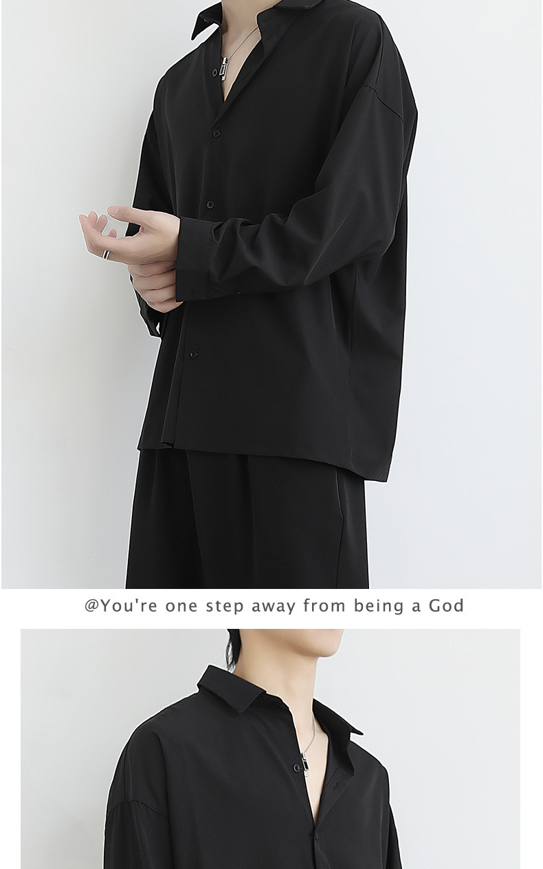 Loose ice silk drape black men's long-sleeved shirt for spring and autumn, cool and stylish dk men's casual base white shirt