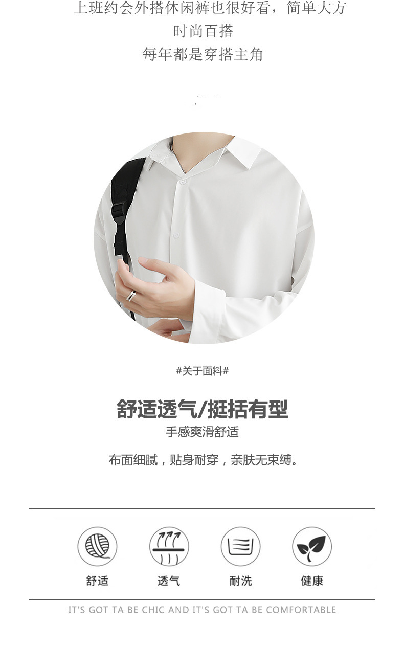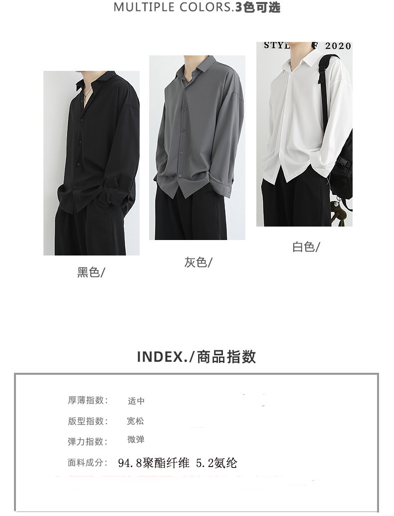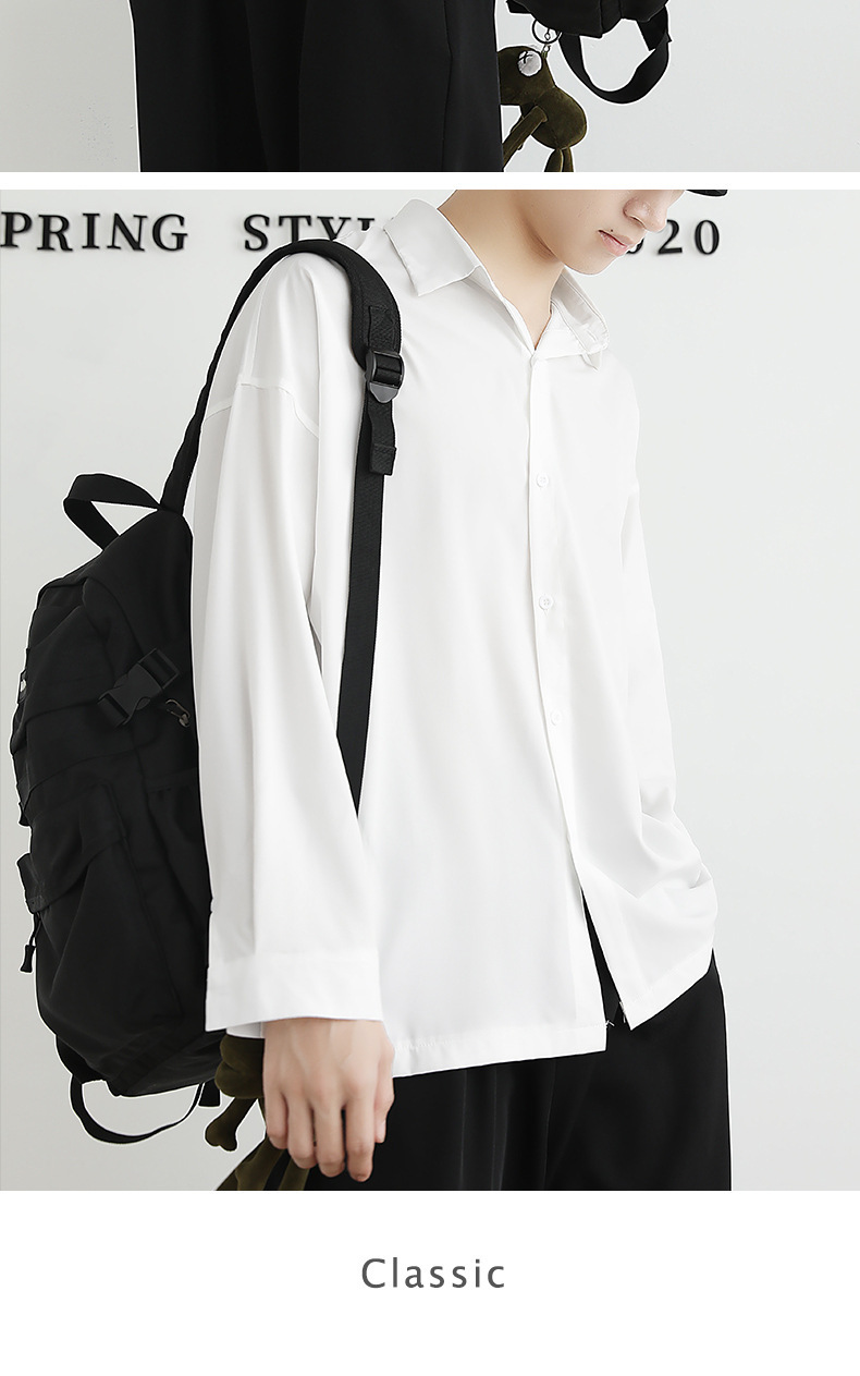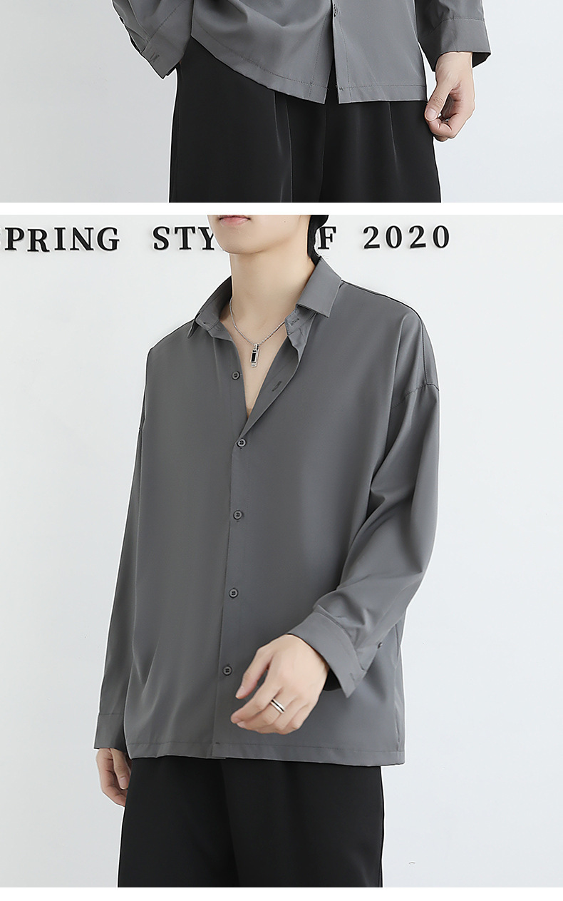 Loose ice silk drape black men's long-sleeved shirt for spring and autumn, cool and stylish dk men's casual base white shirt