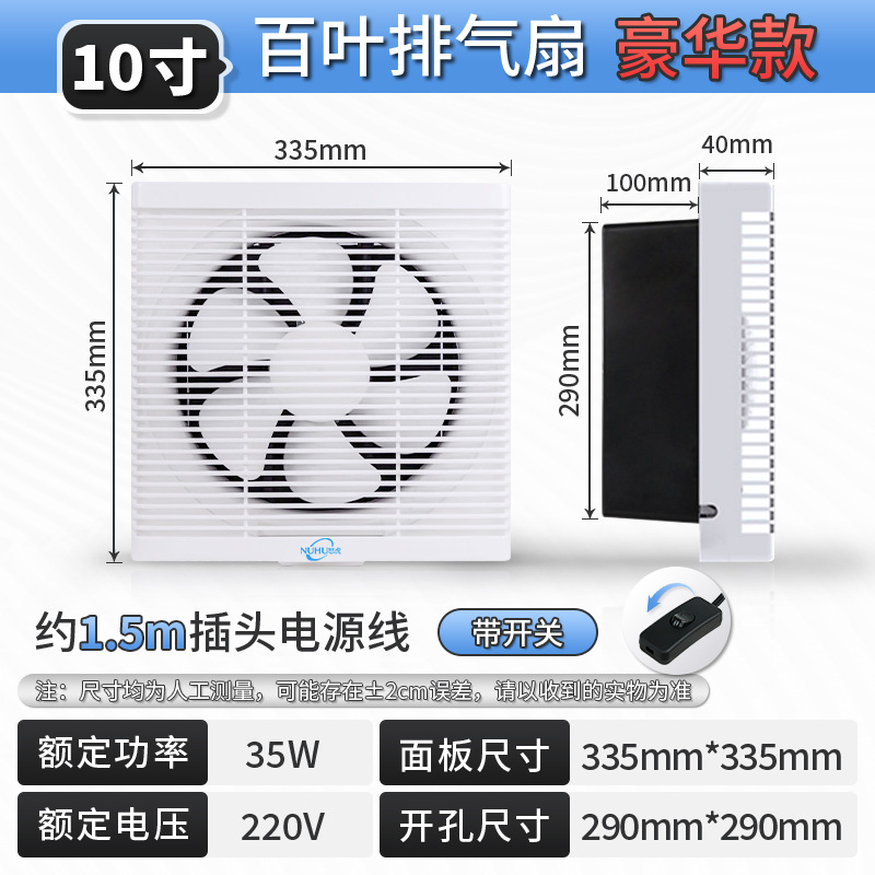 10-inch [1.5-meter power cord with switch, five-year warranty]