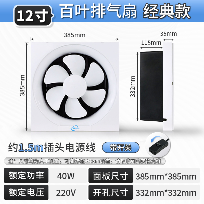 12-inch [1.5-meter power cord with switch, five-year warranty]