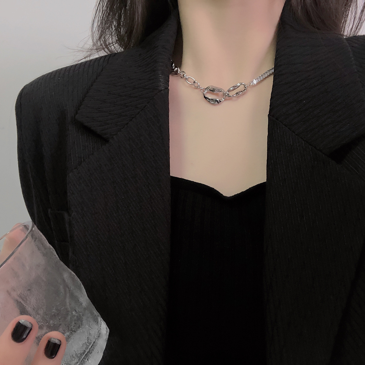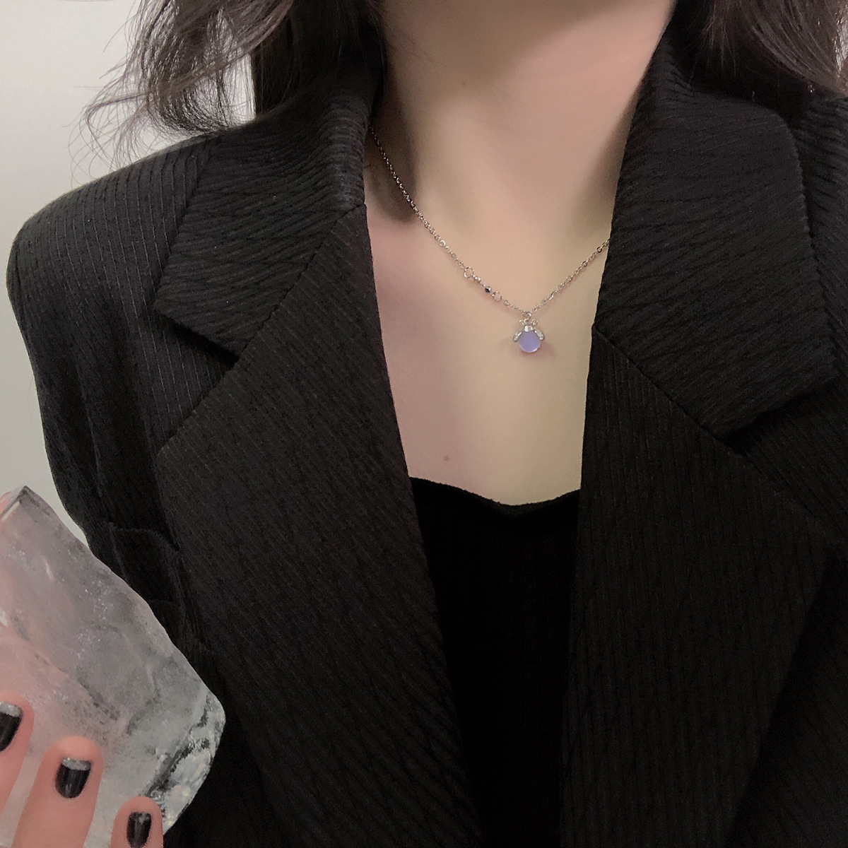 Love Collarbone Chain Women's 2022 new style high-end European and American Instagram niche luxury simple style Versatile necklace pomelo ear