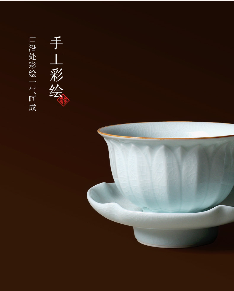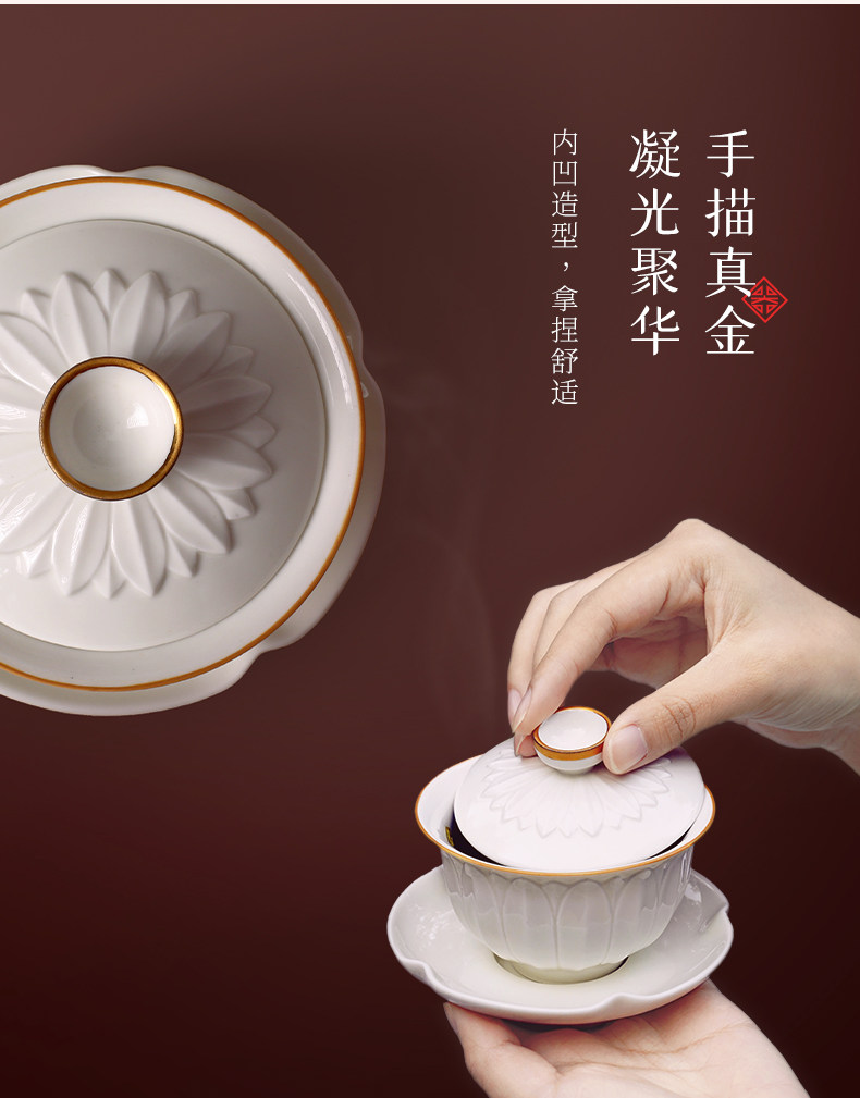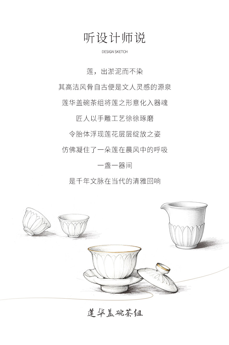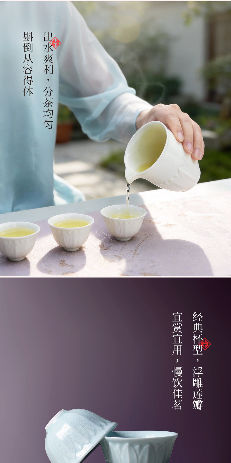 Lu Bao's new product, the Song Dynasty Charm Ding Kiln Lotus Pattern Covered Bowl Tea Set, is an elegant gift box for elders, friends, leaders and clients