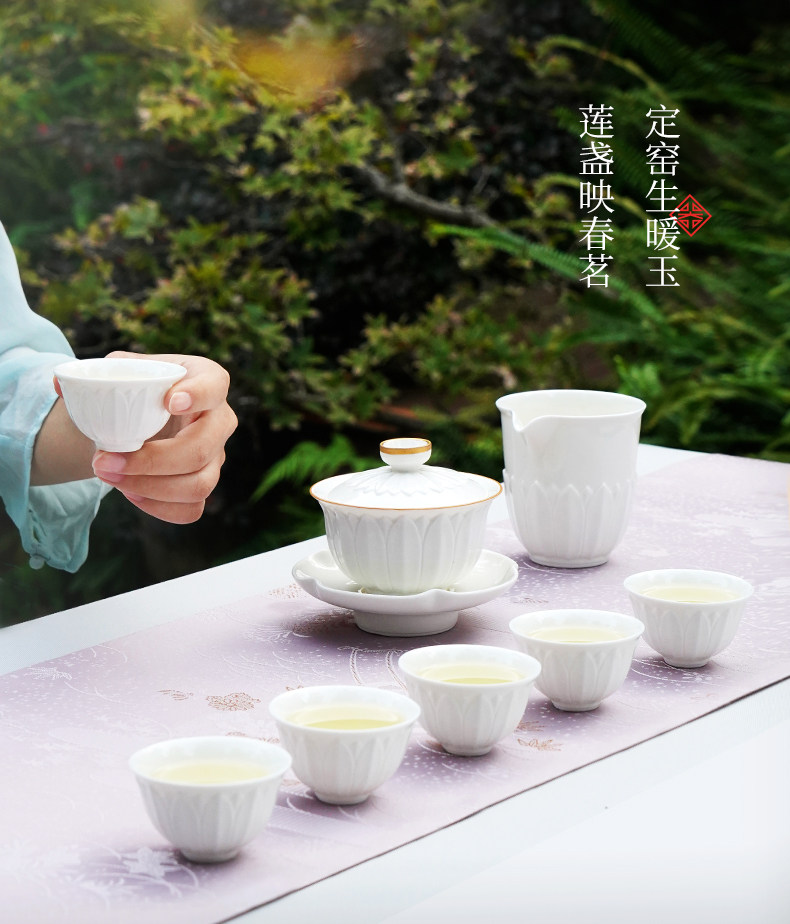 Lianhua Covered Bowl Tea Set - Ding Kiln White
