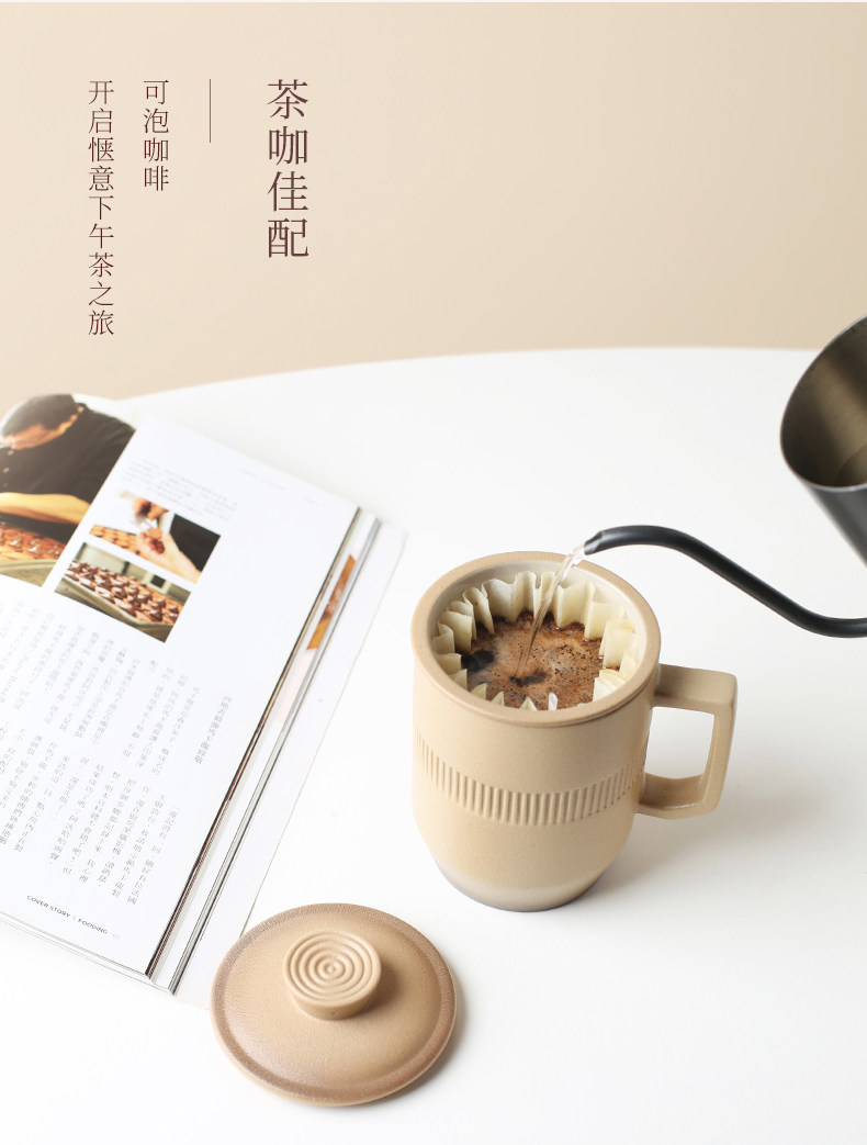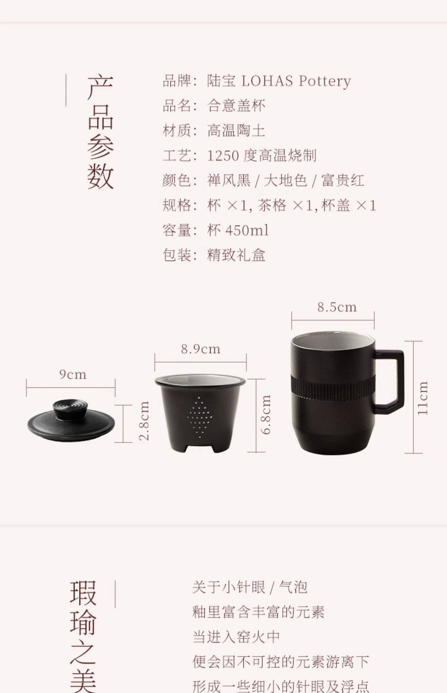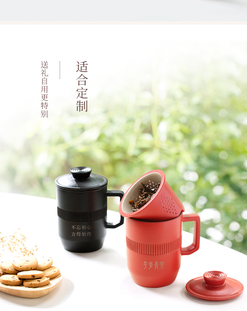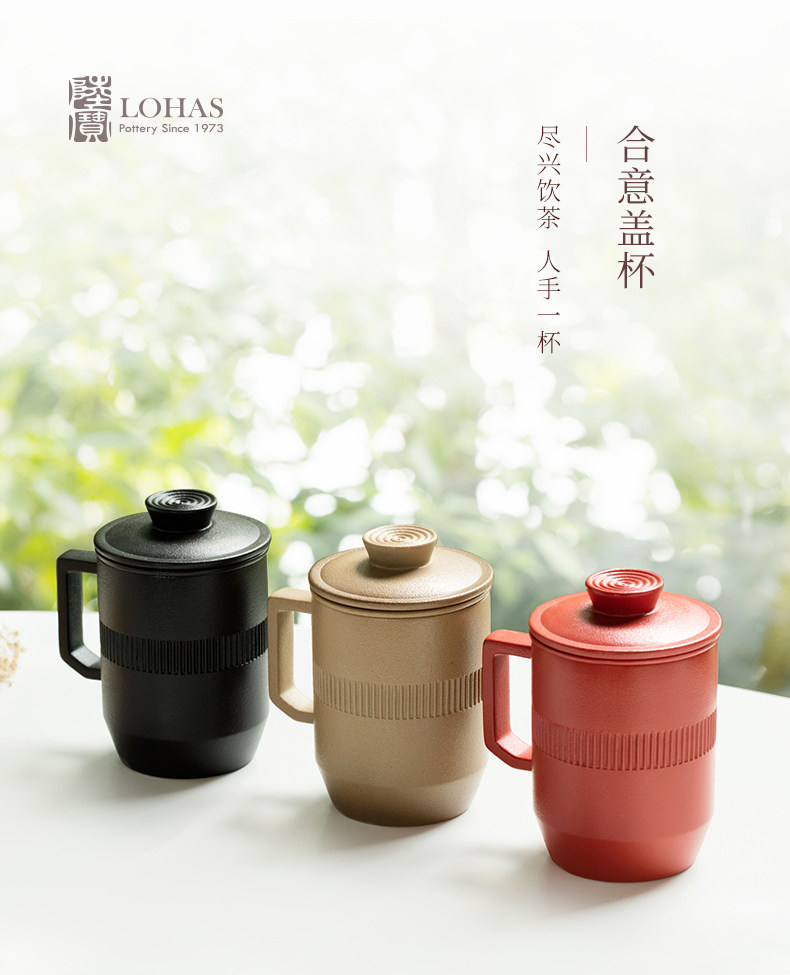Lubao Ceramic tea cups, men's office tea brewing cups, ideal lid cups, tea-water separation drinking cups, large-capacity water cups