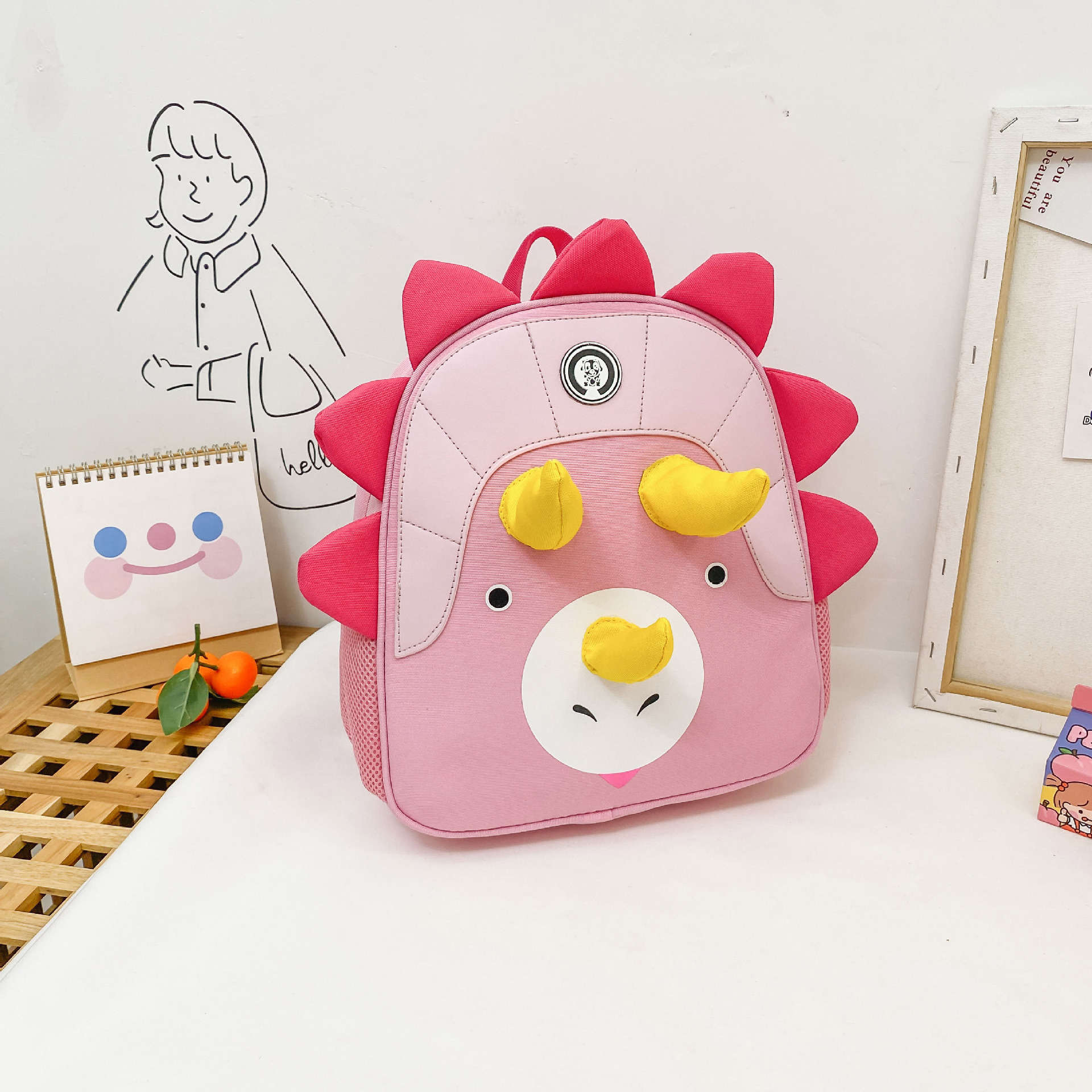 Lucky Little Pig's new student bag, children's triangular dinosaur backpack, kindergarten school bag, anti-wandering and cute children's bag