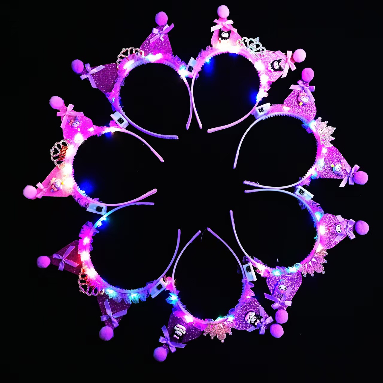 Luminous Kuromi Crown Hair band, children's cartoon bow hair accessory, cute and sweet hair band, performance dressing headwear